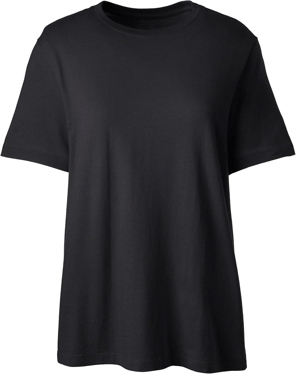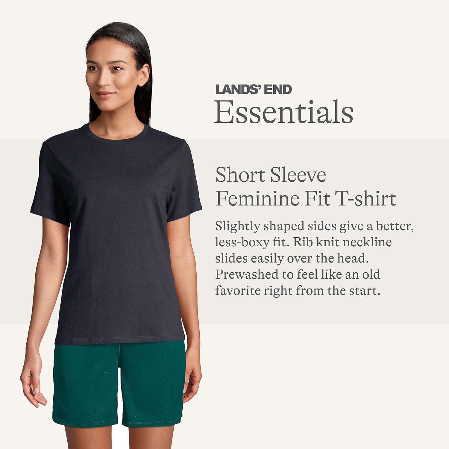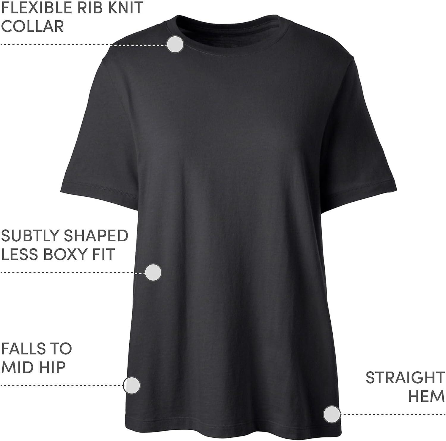 Lands’ End Essentials Women’s Short-Sleeve Soft Cotton T-Shirt – Tailored Feminine Fit(Black)
