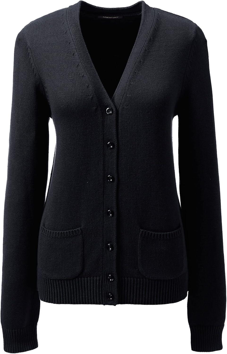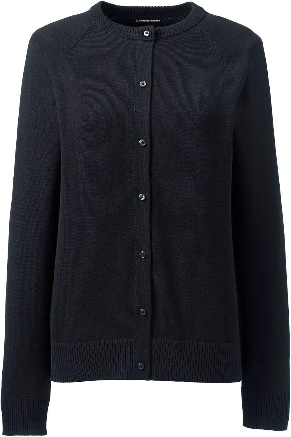 Lands’ End School Uniform Women’s Cotton Modal Button Front Cardigan Sweater(Black)
