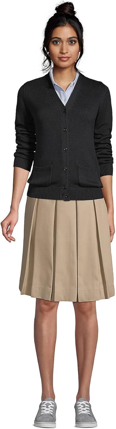 Lands’ End School Uniform Young Women’s Cotton Modal Cardigan Sweater(Black)
