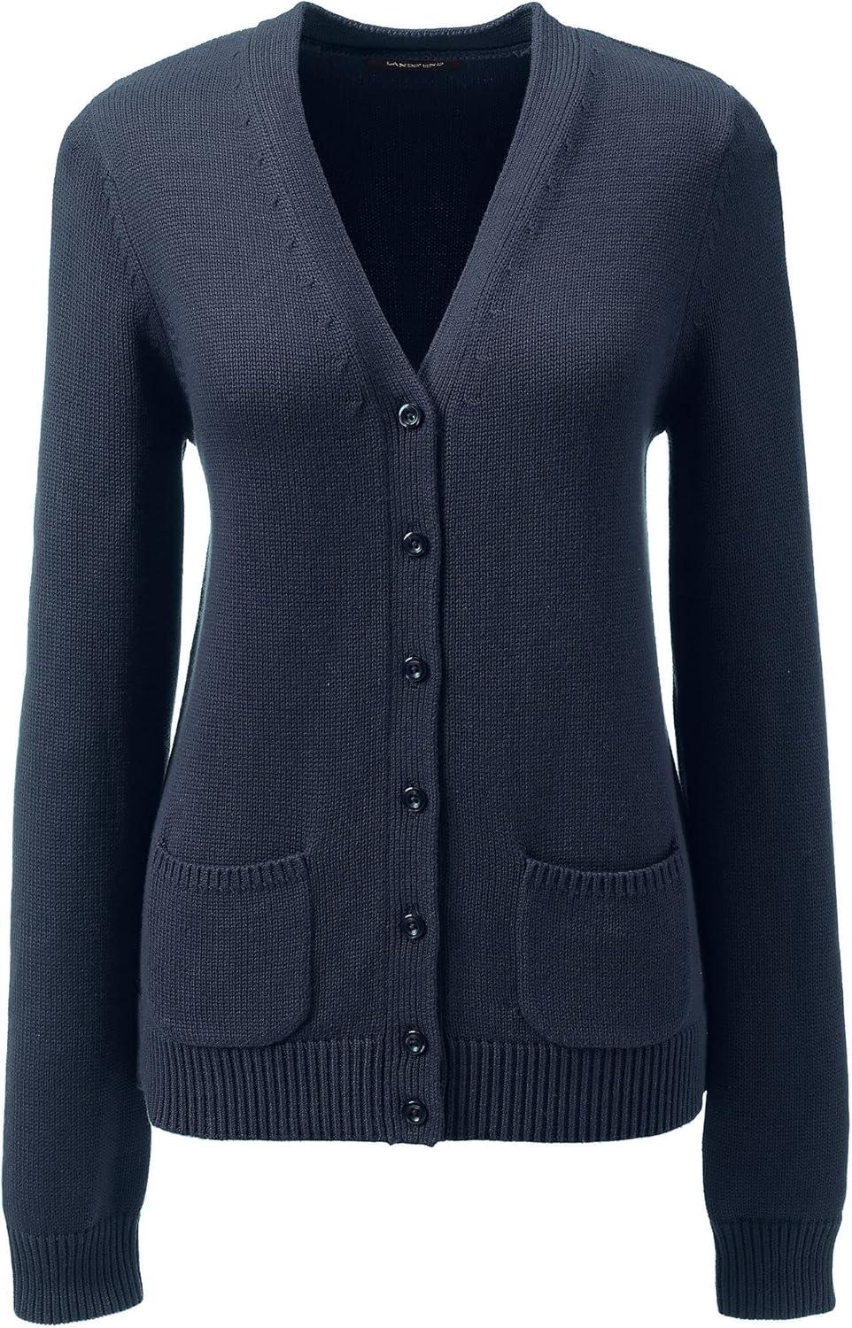 Lands’ End School Uniform Women’s Cotton Modal Button Front Cardigan Sweater(Classic Navy)