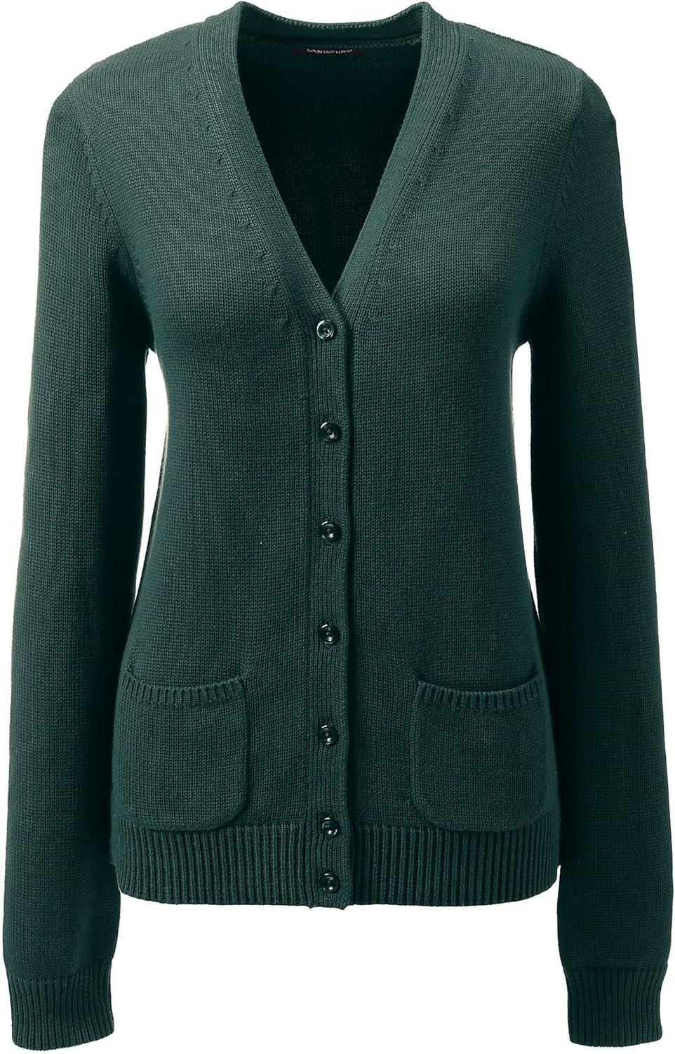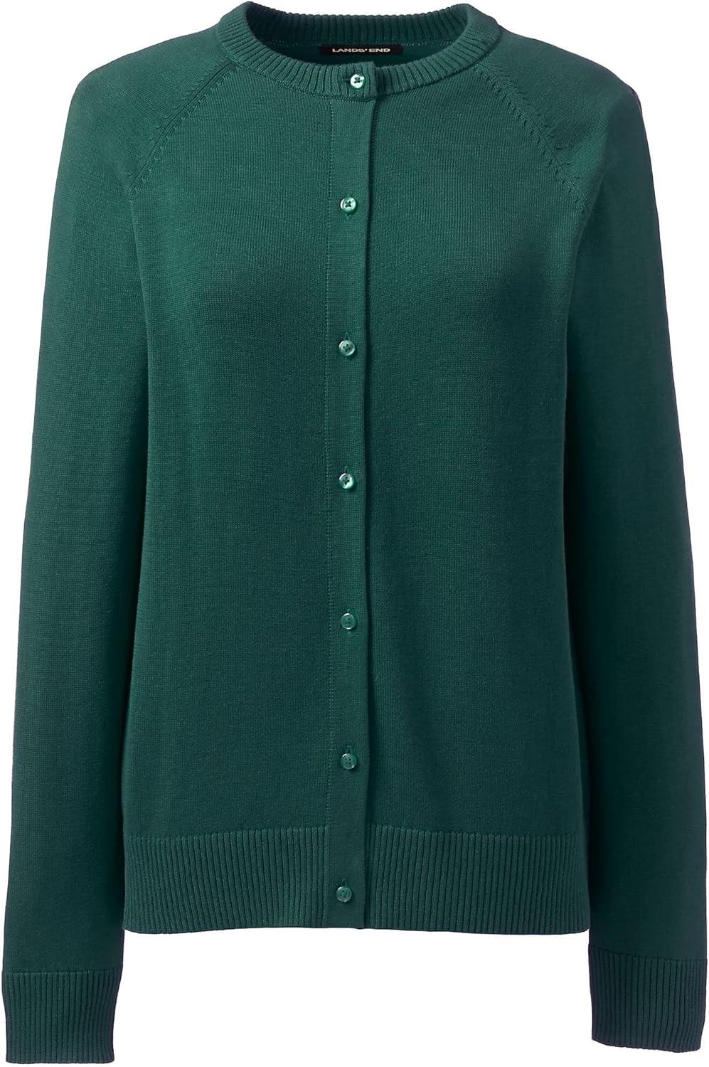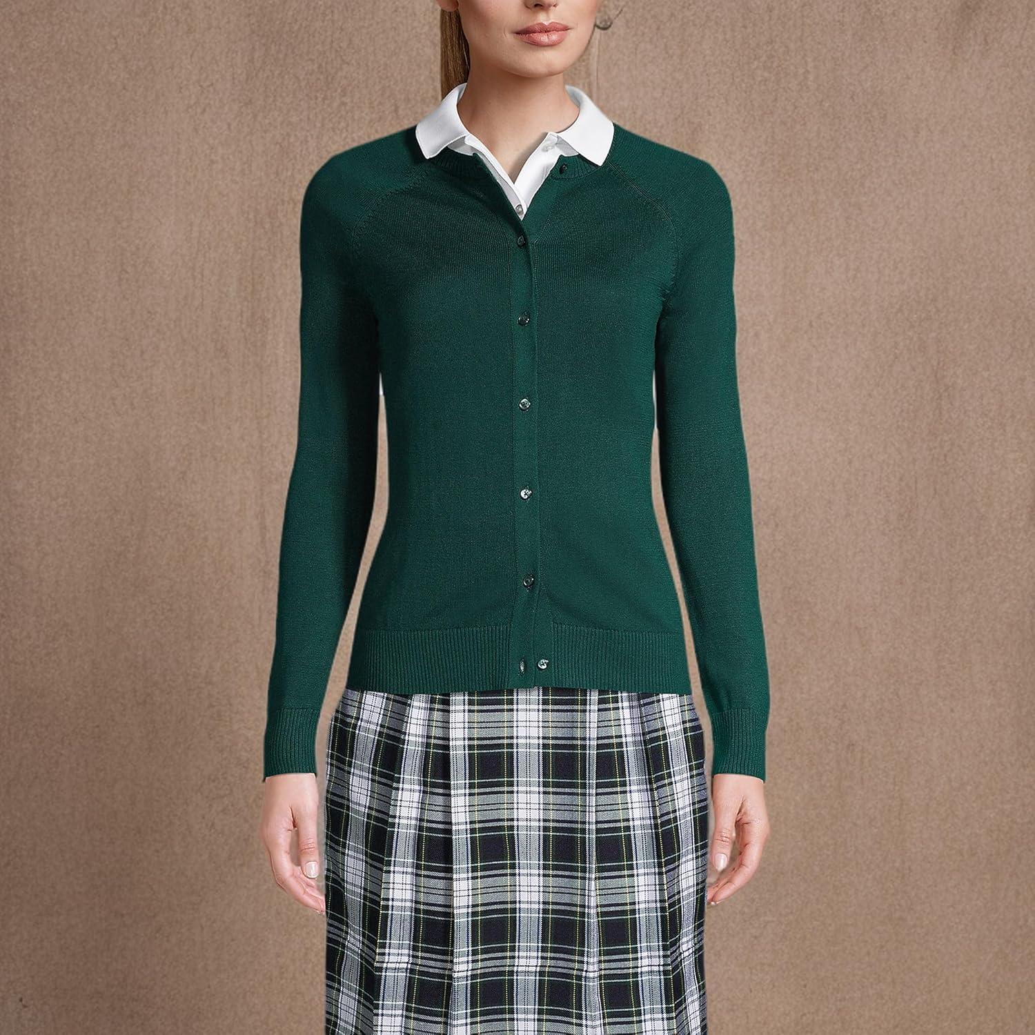 Lands’ End School Uniform Women’s Cotton Modal Button Front Cardigan Sweater(Evergreen)