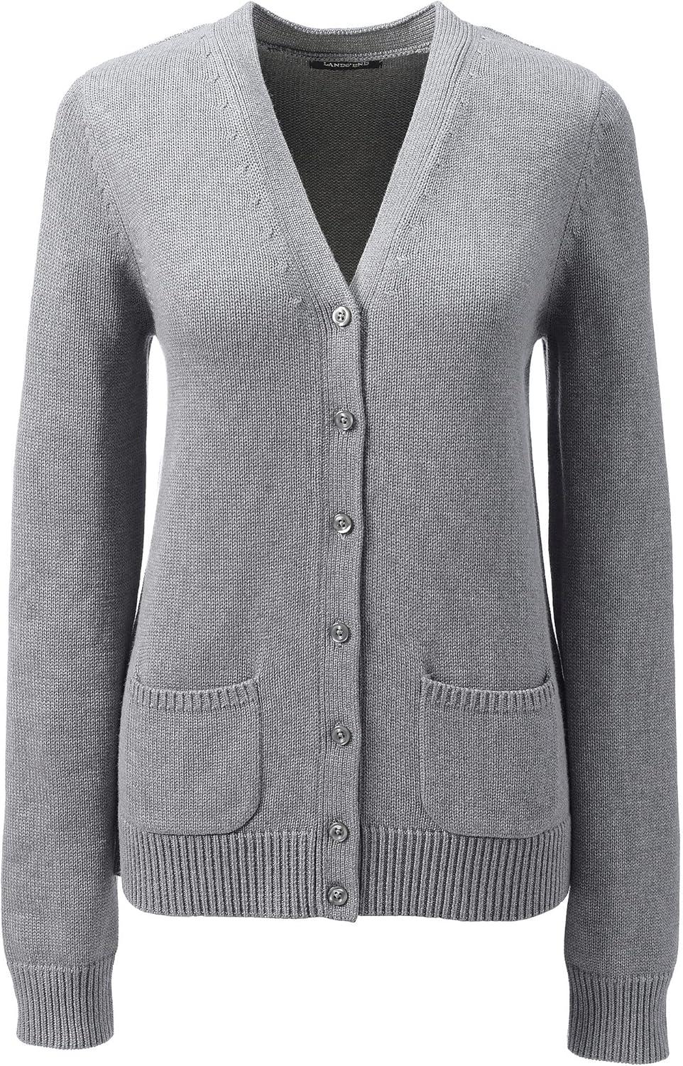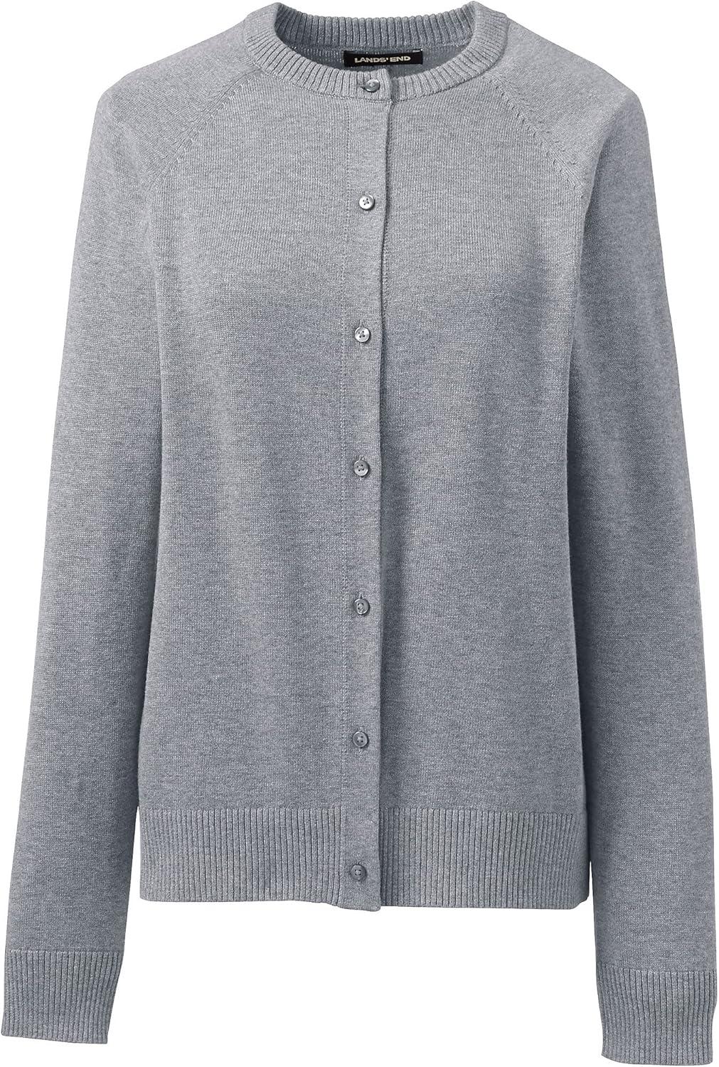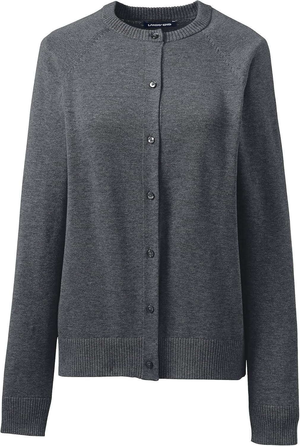 Lands’ End School Uniform Women’s Cotton Modal Button Front Cardigan Sweater(Pewter Heather)
