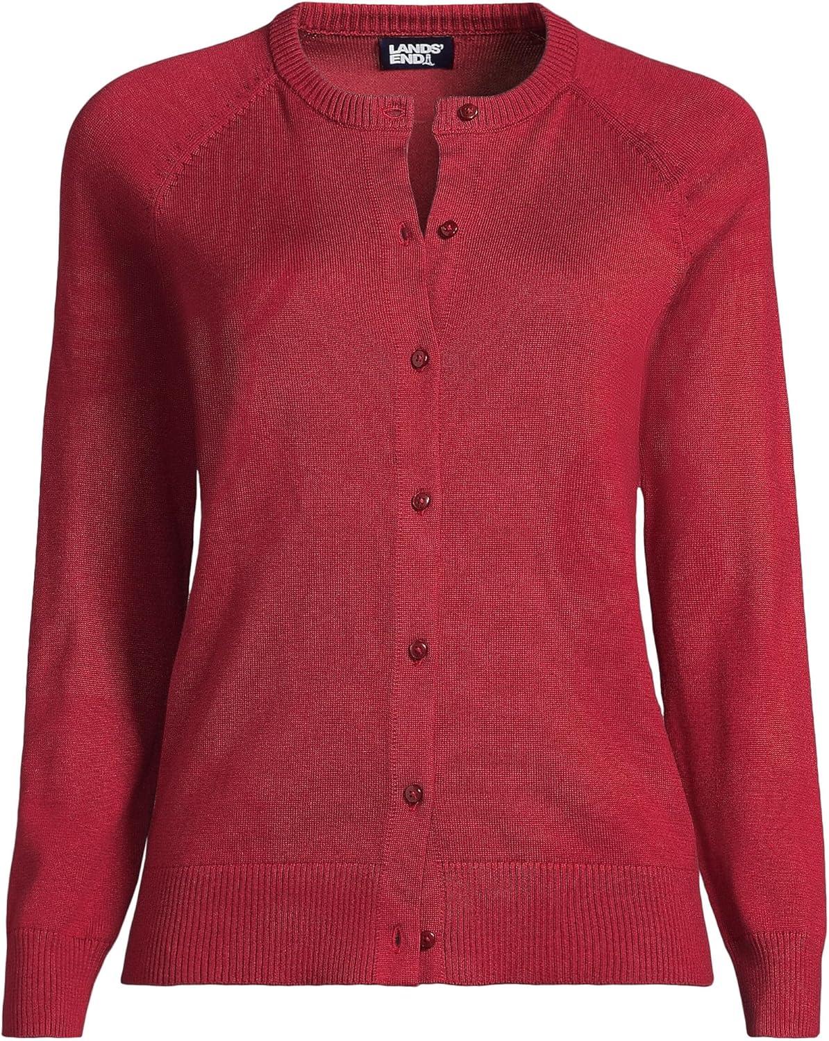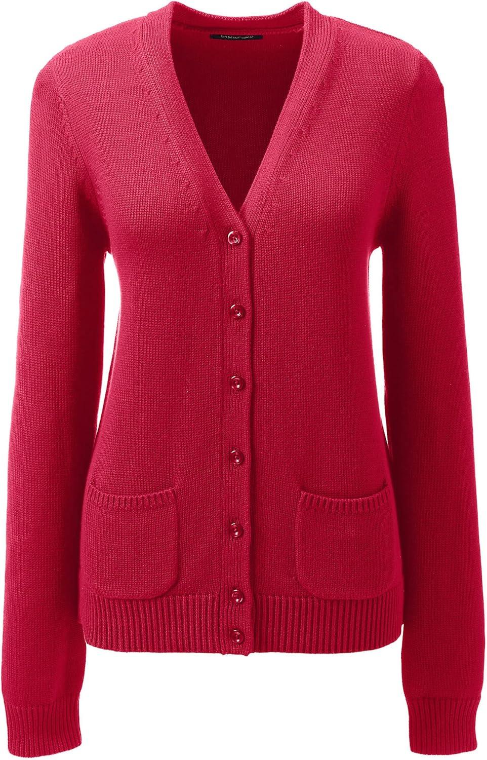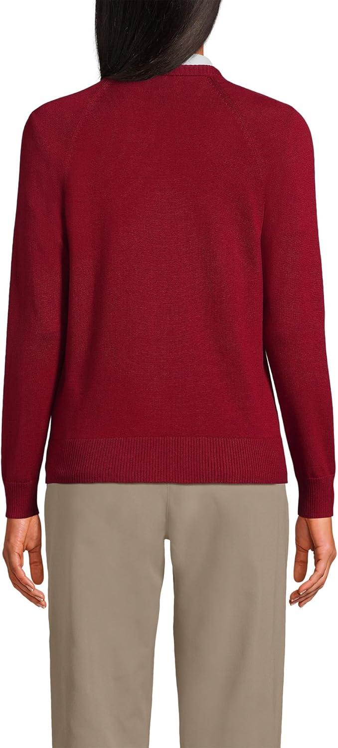 Lands’ End School Uniform Women’s Cotton Modal Button Front Cardigan Sweater(Red)