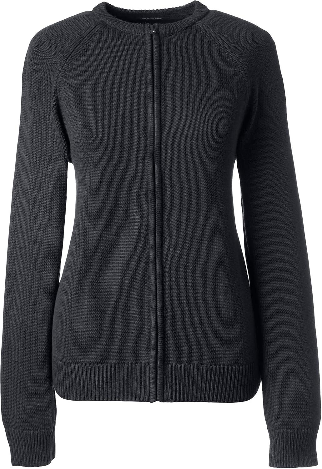 Lands’ End School Uniform Women’s Cotton Modal Zip-Front Cardigan Sweater(Black)