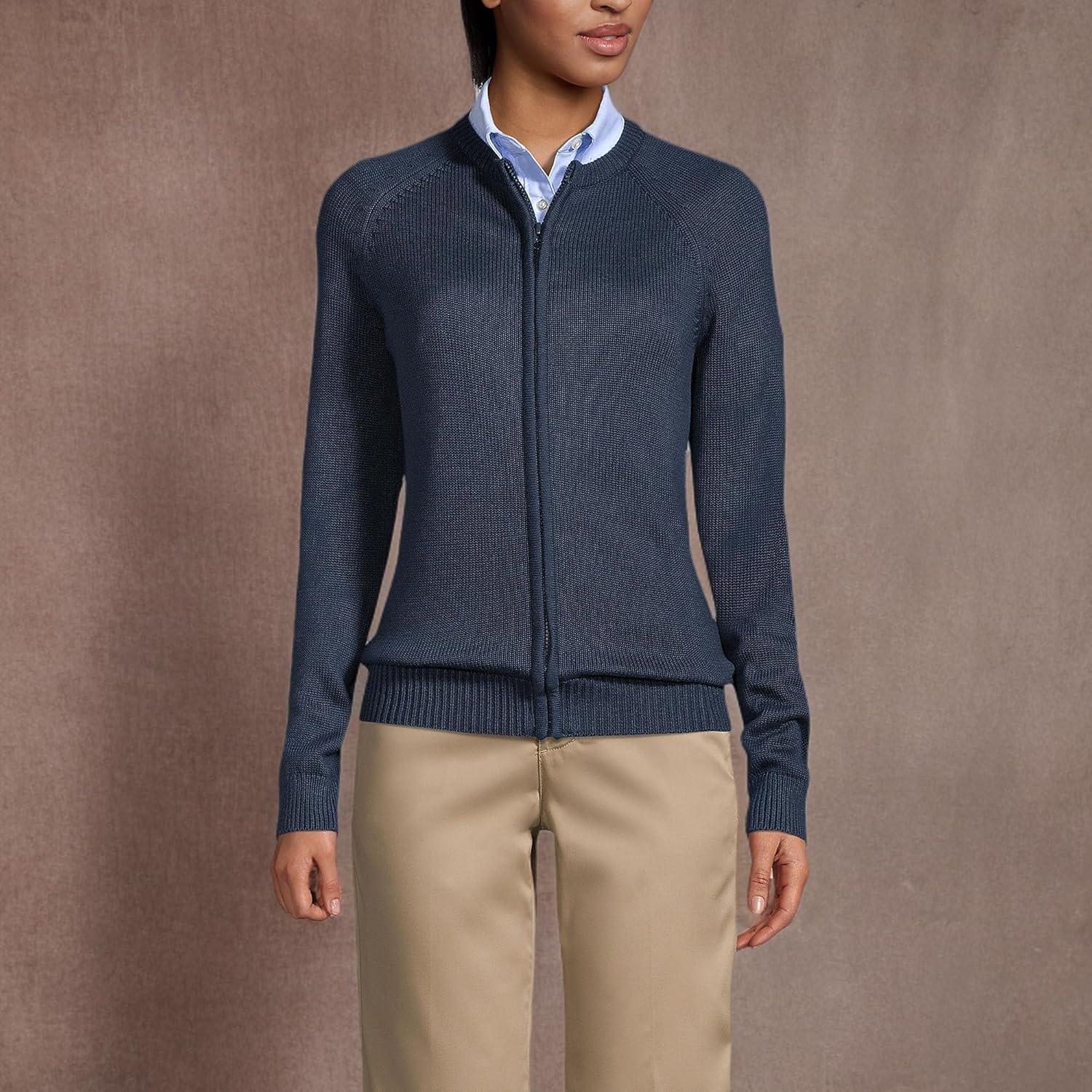 Lands’ End School Uniform Women’s Cotton Modal Zip-Front Cardigan Sweater(Classic Navy)