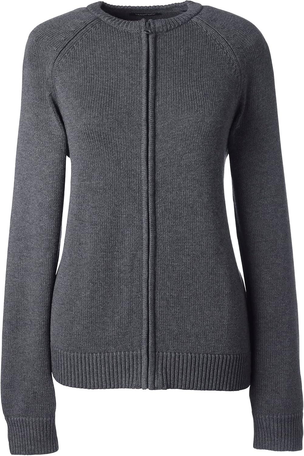 Lands’ End School Uniform Women’s Cotton Modal Zip-Front Cardigan Sweater(Coal Heather)
