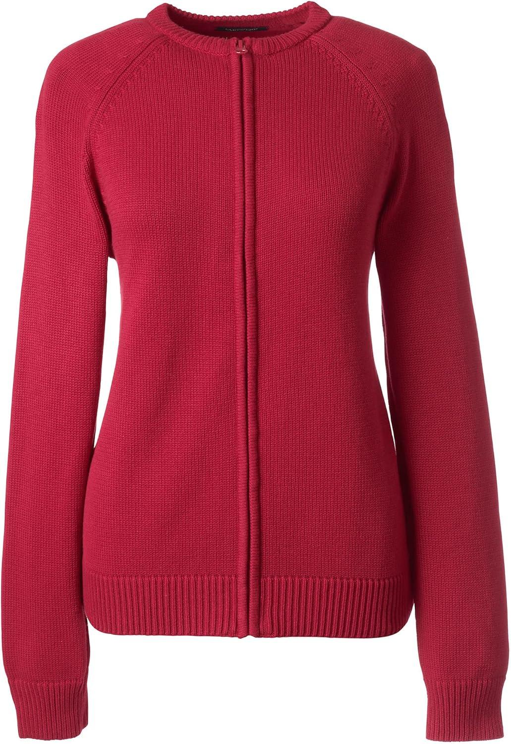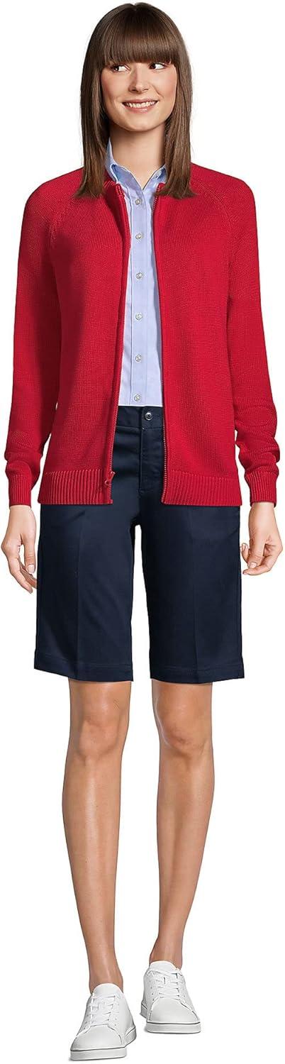 Lands’ End School Uniform Women’s Cotton Modal Zip-Front Cardigan Sweater(Red)