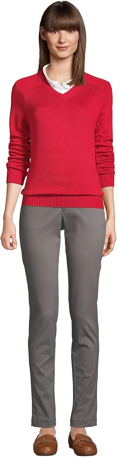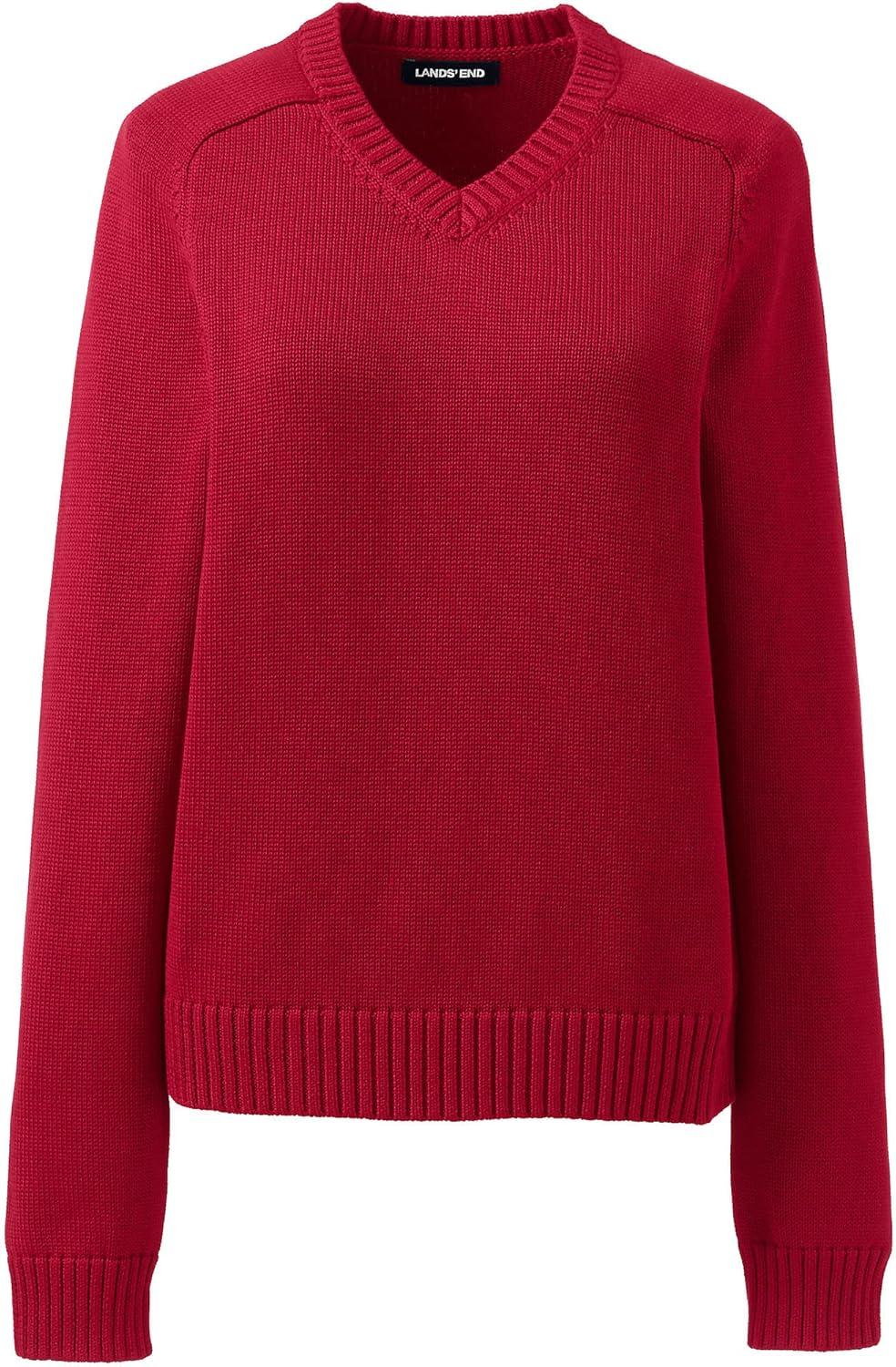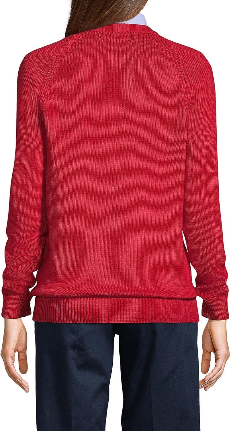 Lands’ End School Uniform Young Women’s Cotton Modal V-Neck Sweater(Red)