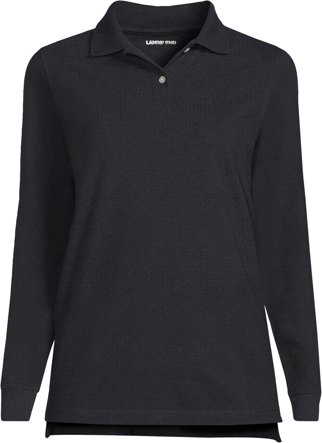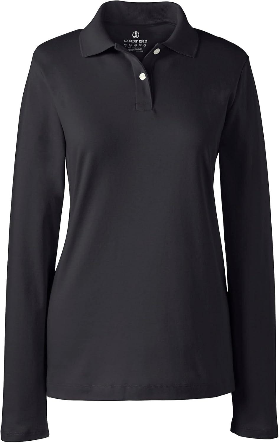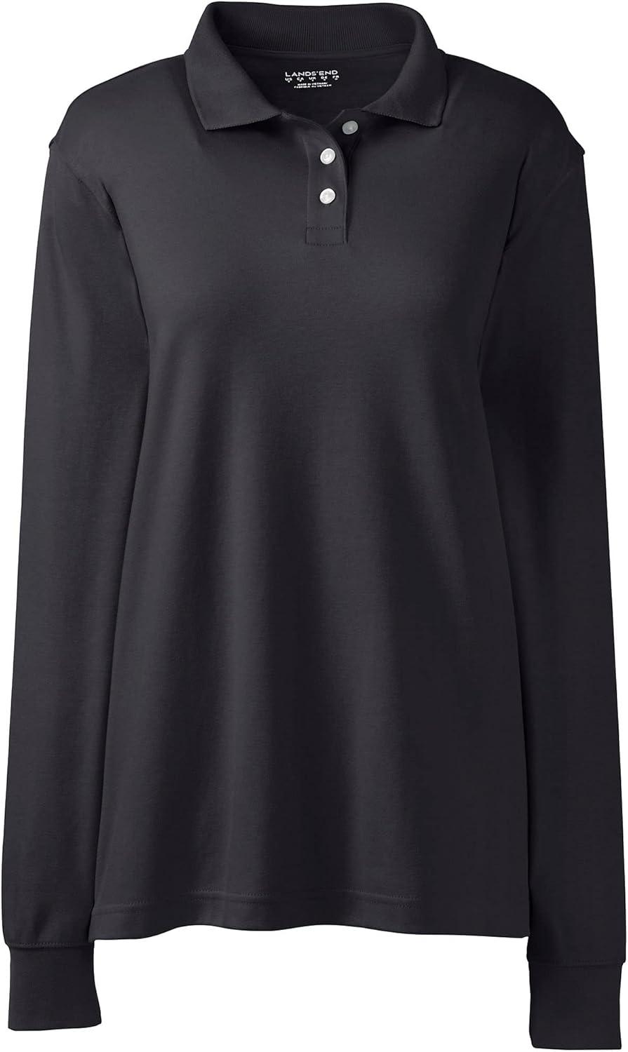 Lands’ End School Uniform Women’s Long Sleeve Feminine Fit Interlock Polo Shirt(Black)