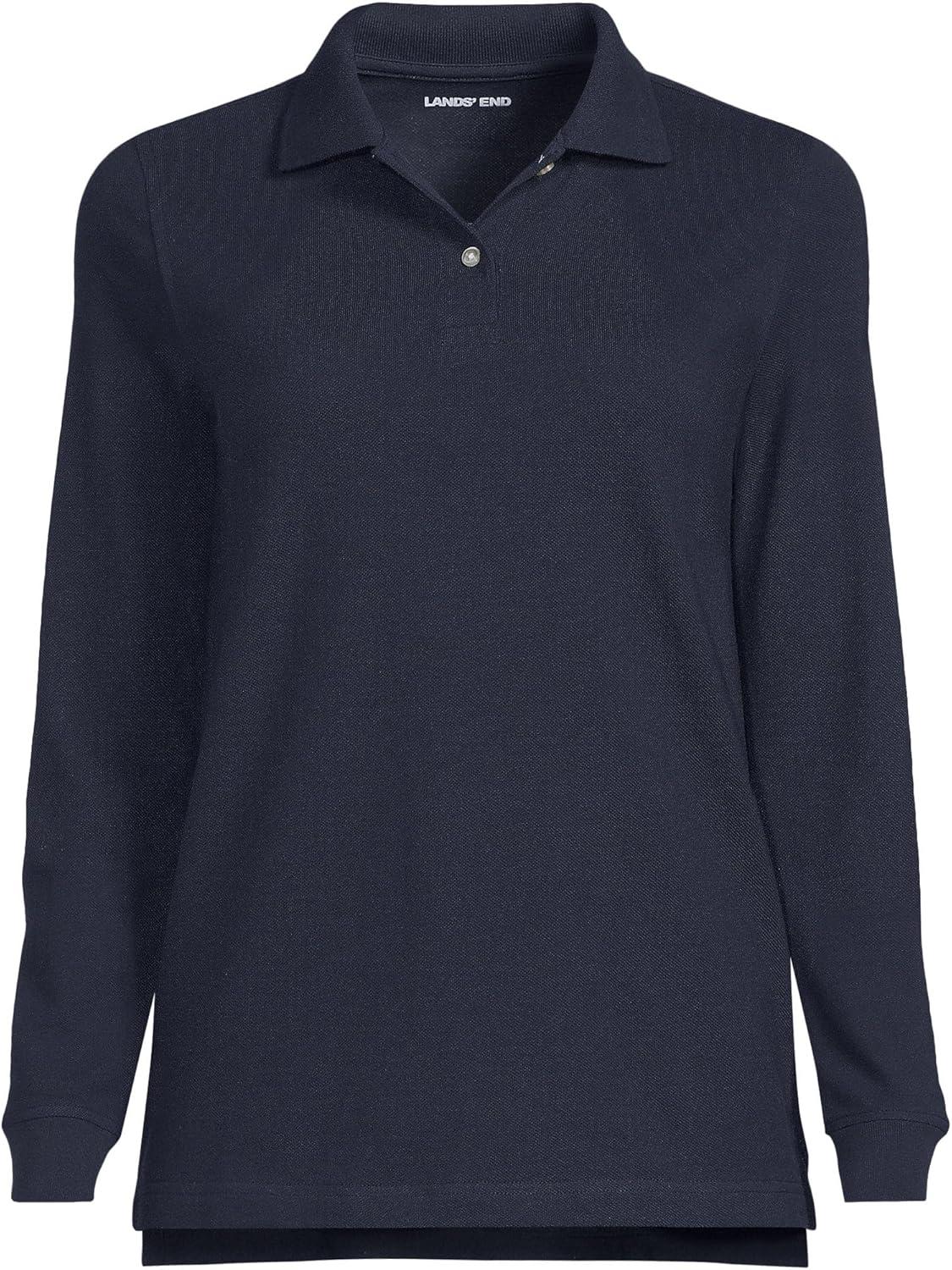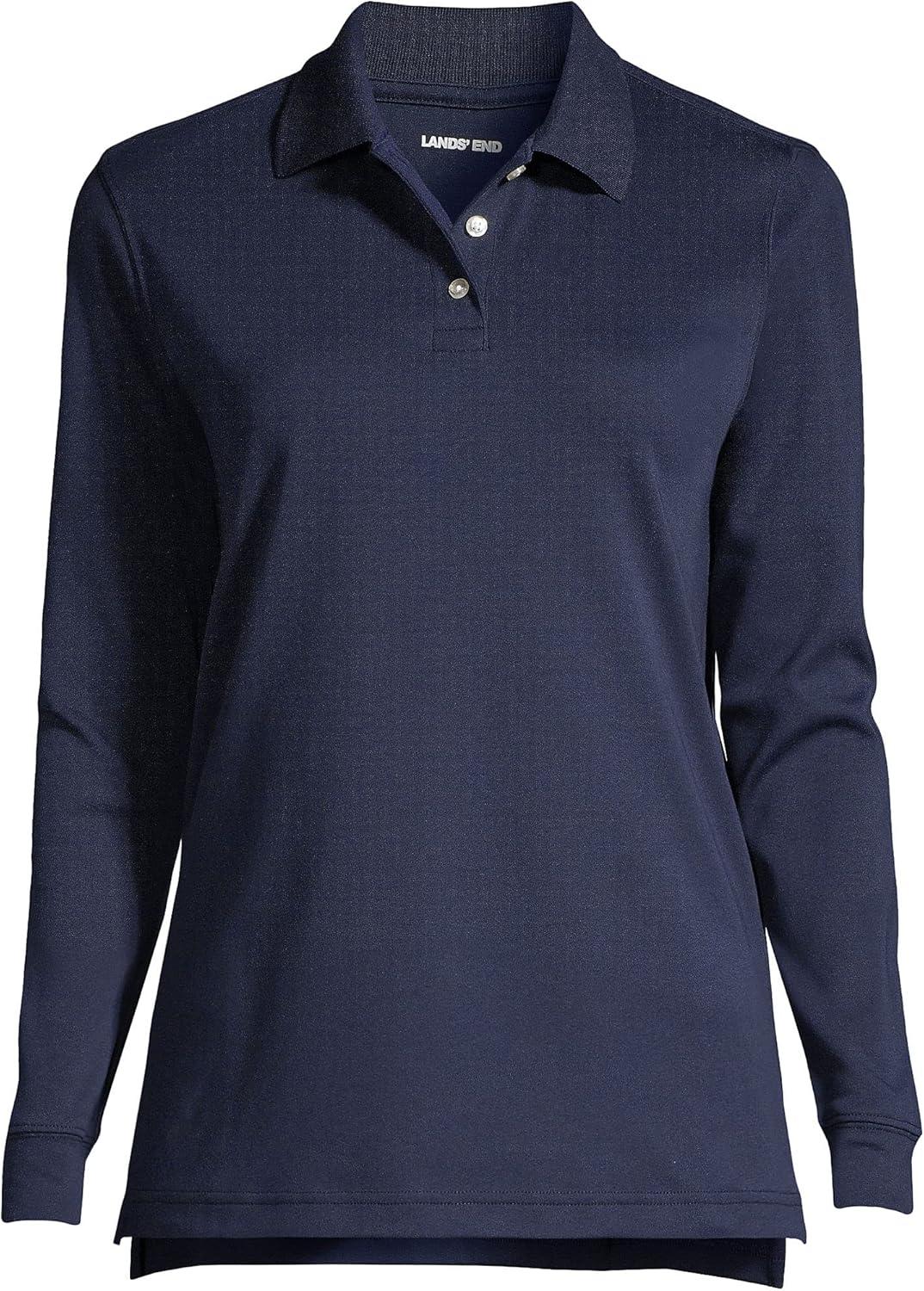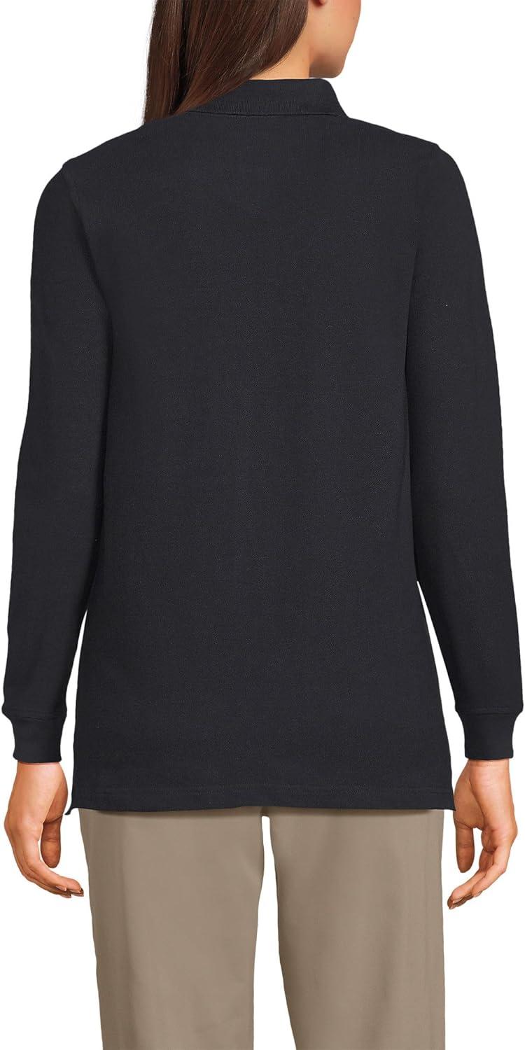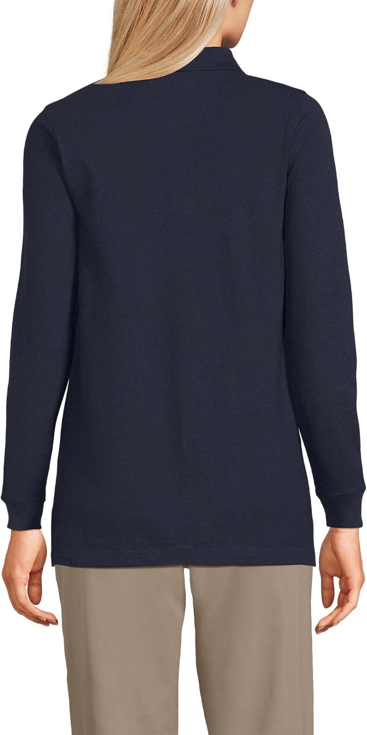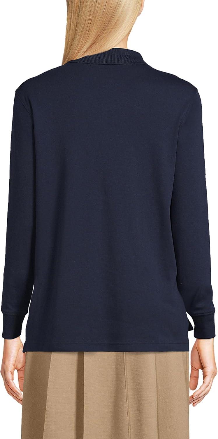 Lands’ End School Uniform Women’s Long Sleeve Feminine Fit Interlock Polo Shirt(Classic Navy)