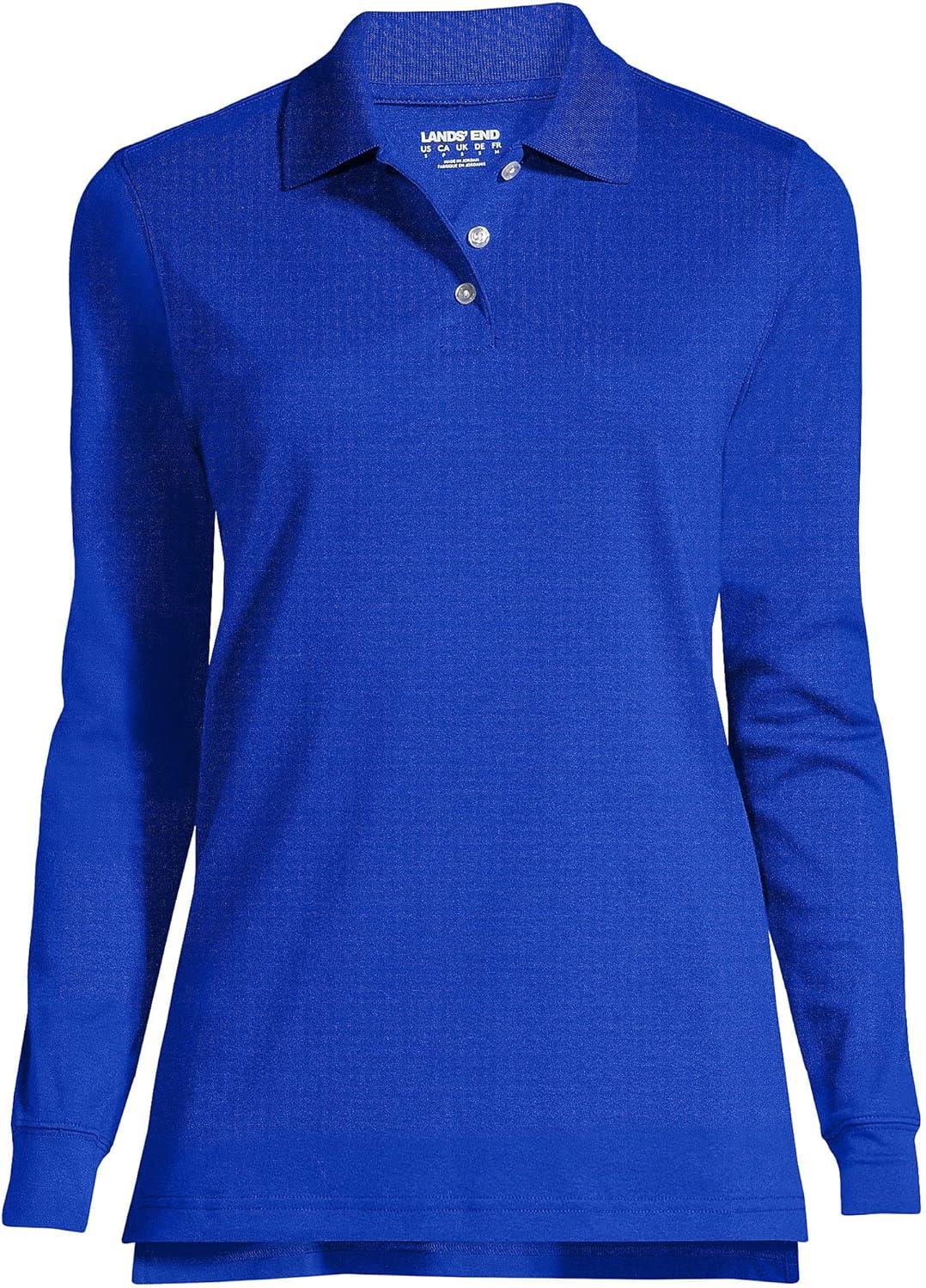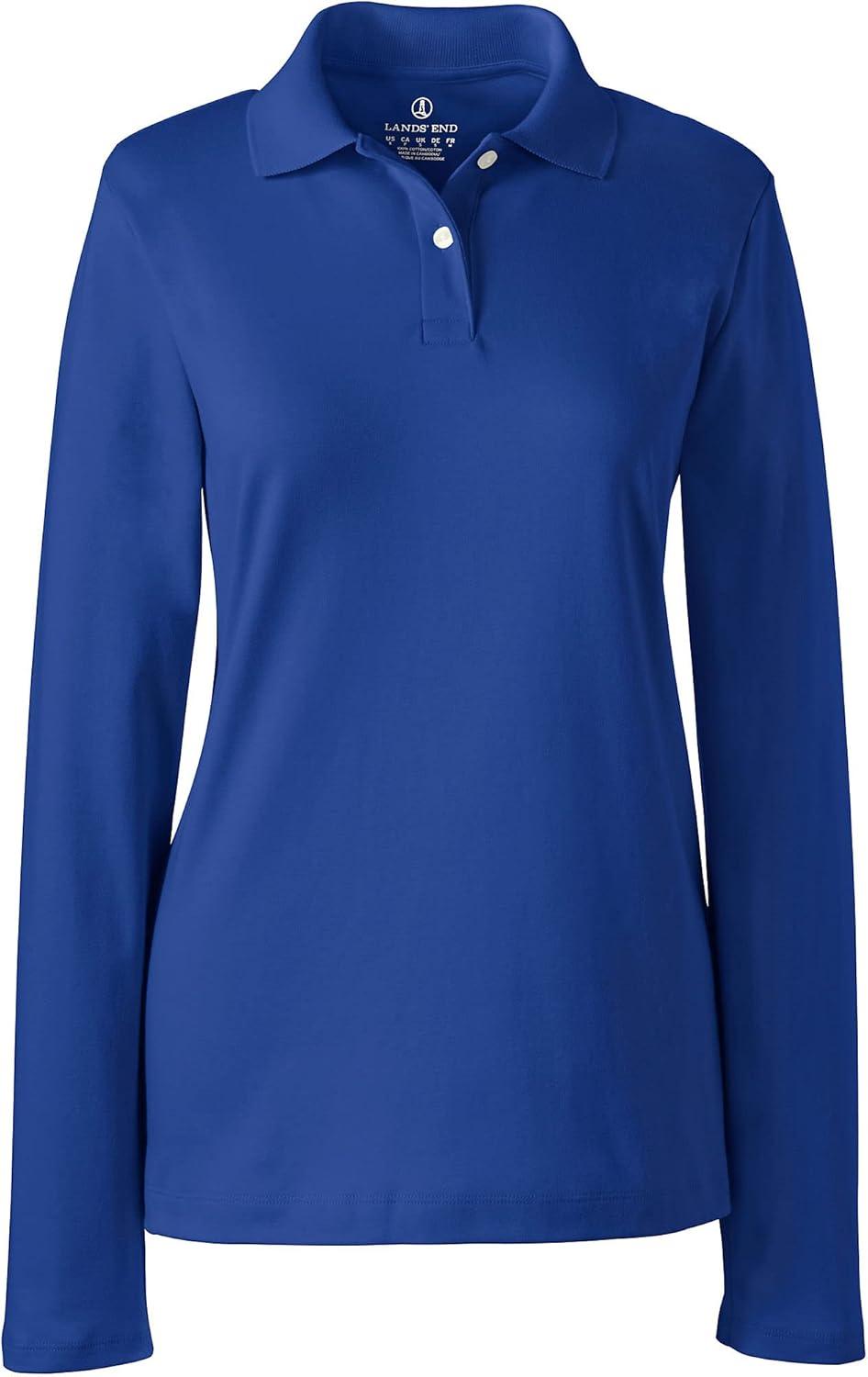 Lands’ End School Uniform Women’s Long Sleeve Interlock Polo Shirt(Cobalt)