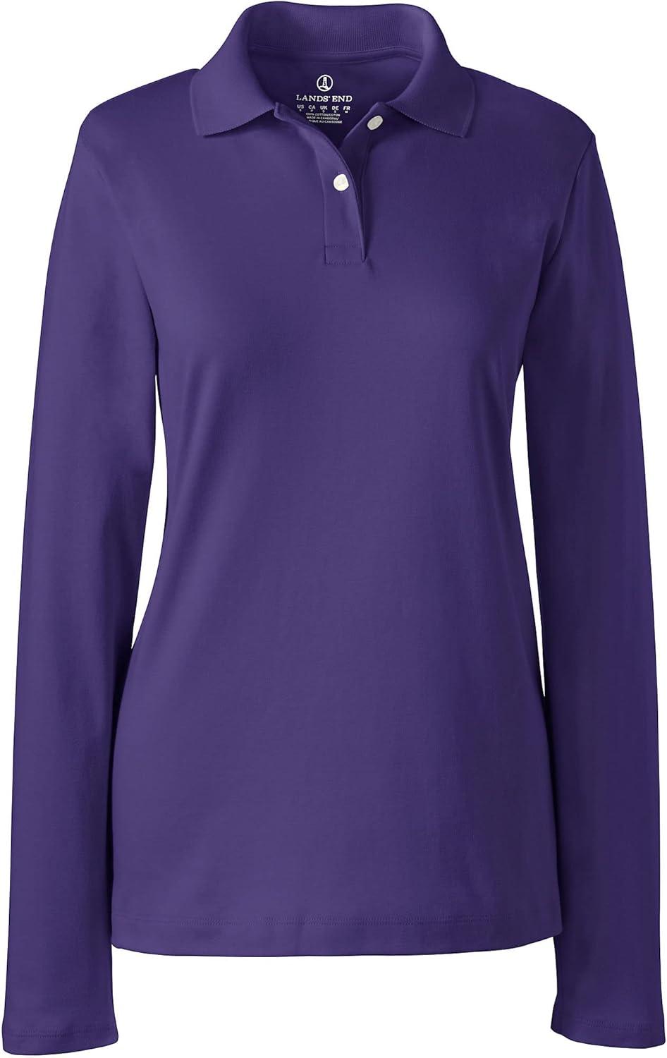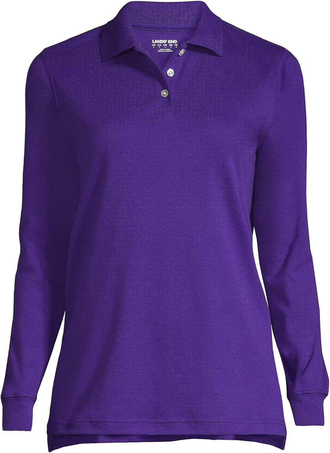 Lands’ End School Uniform Women’s Long Sleeve Interlock Polo Shirt(Deep Purple)