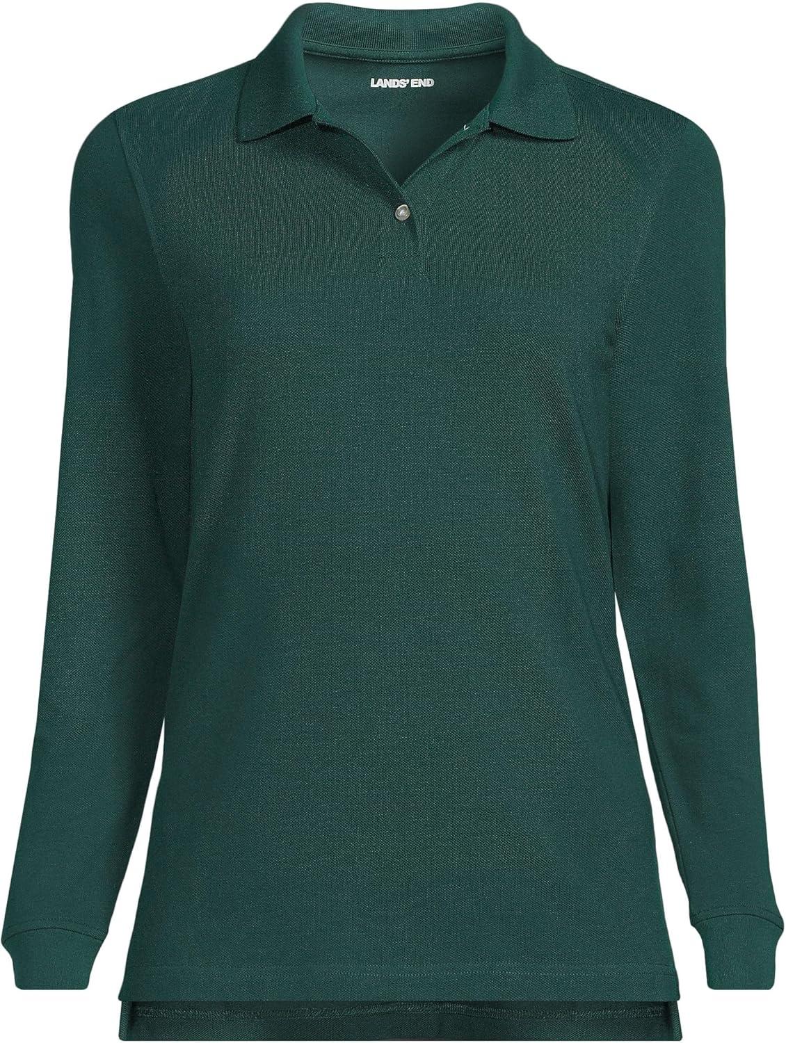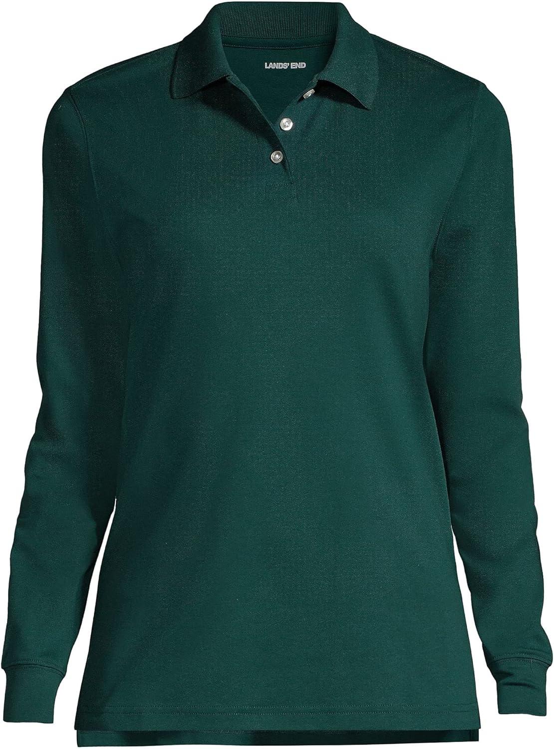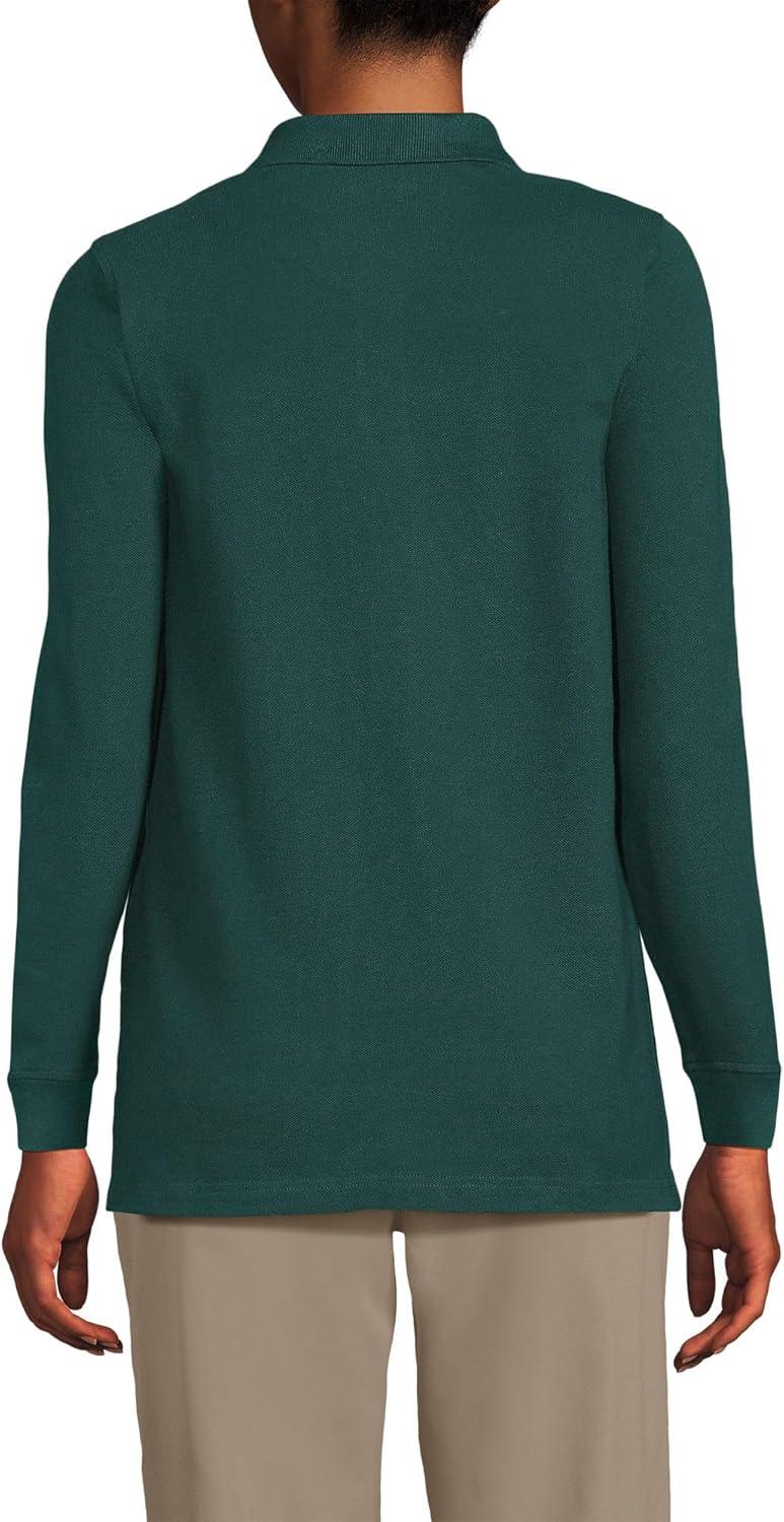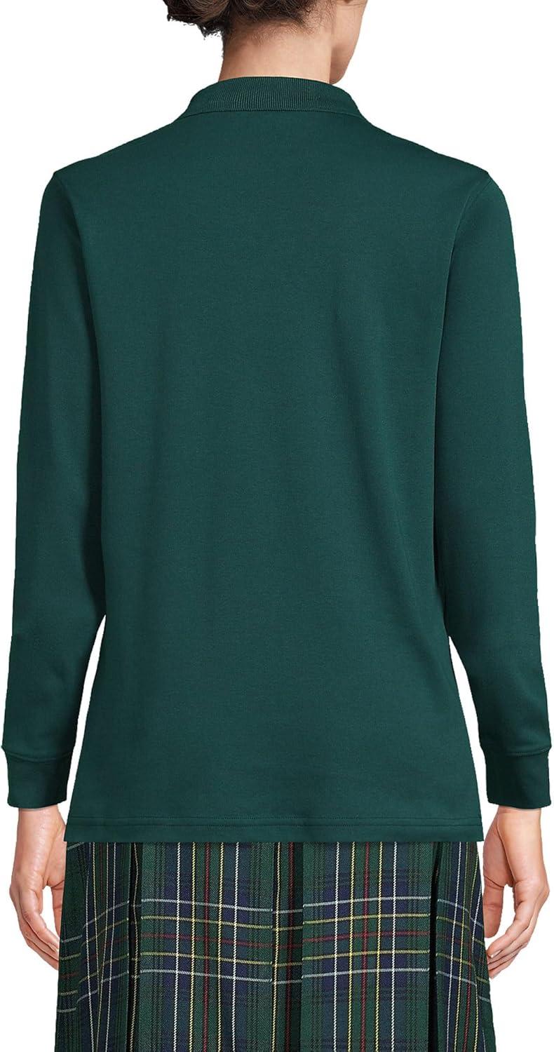 Lands’ End School Uniform Women’s Long Sleeve Feminine Fit Interlock Polo Shirt(Evergreen)