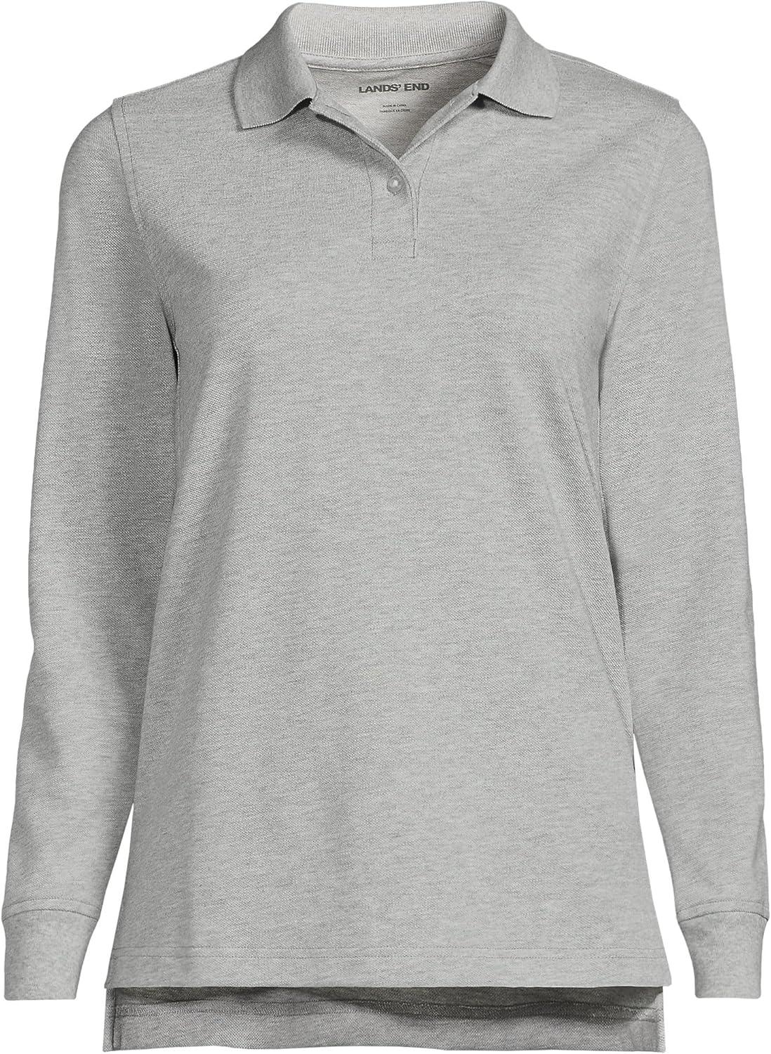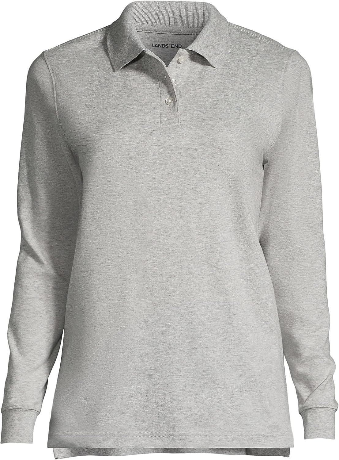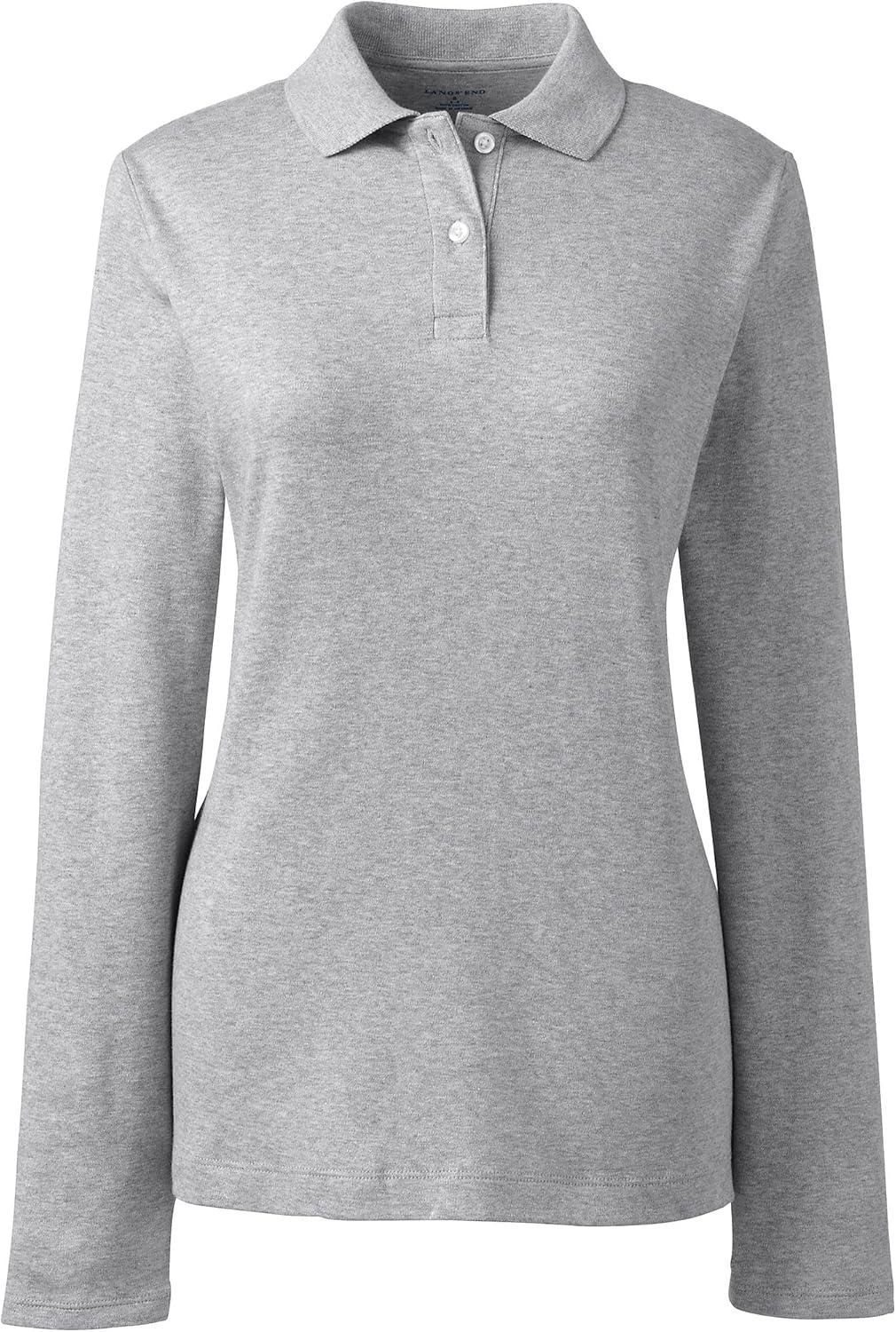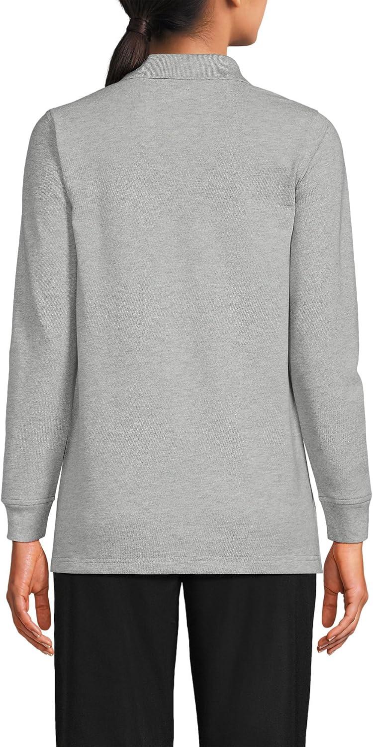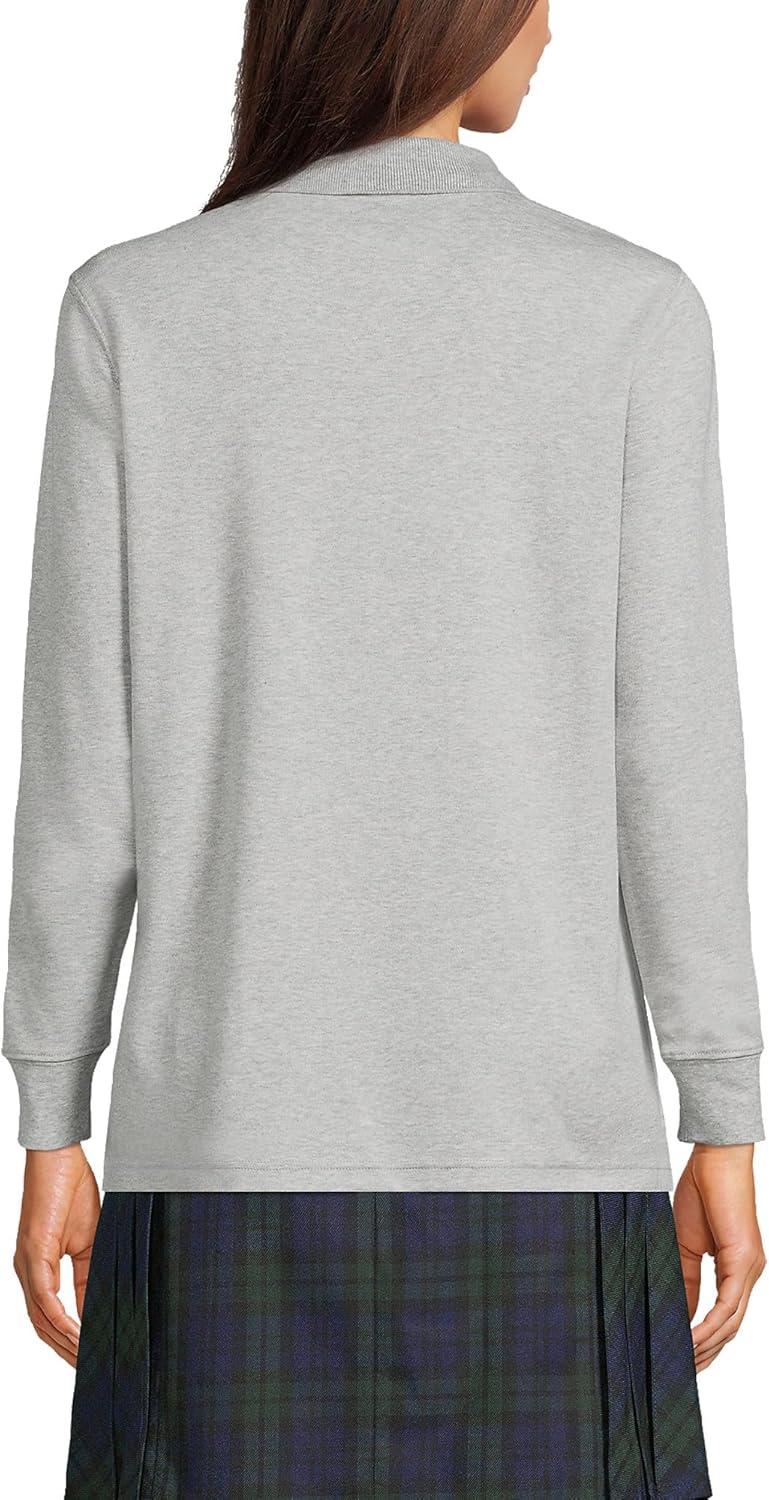 Lands’ End School Uniform Women’s Long Sleeve Feminine Fit Interlock Polo Shirt(Gray Heather)