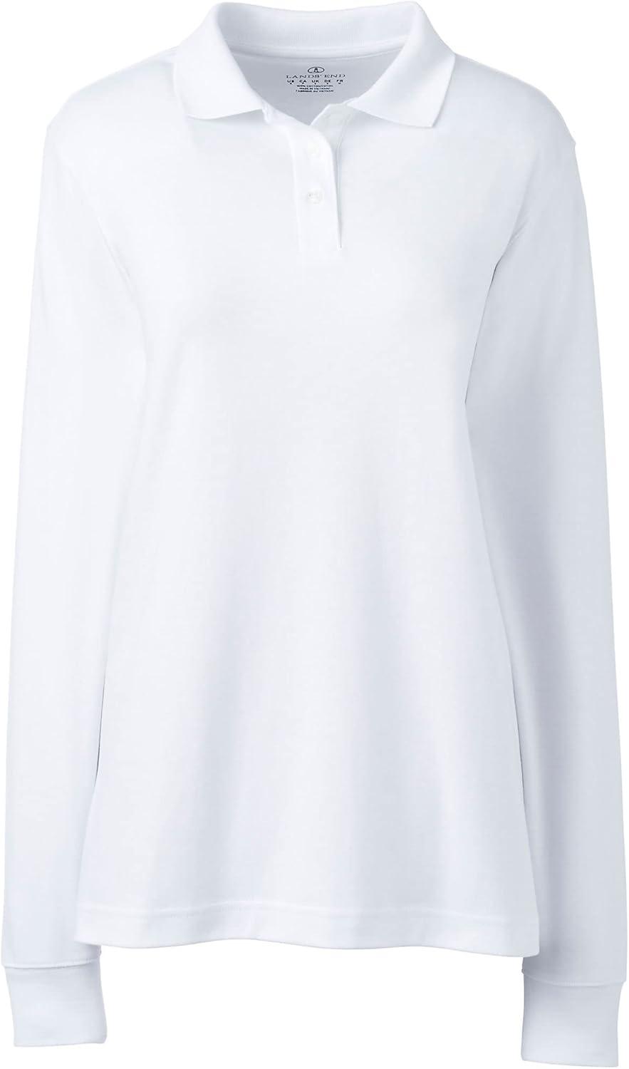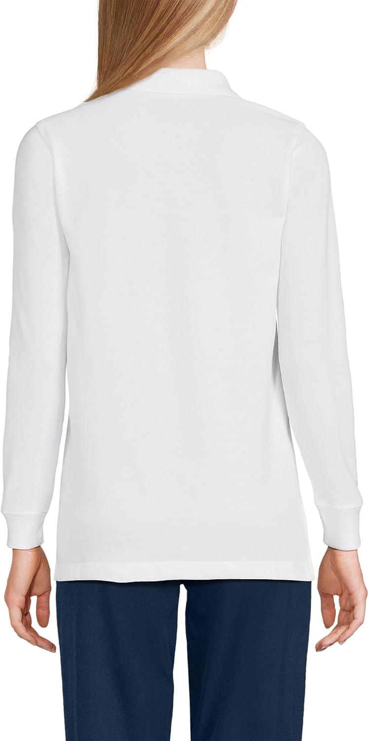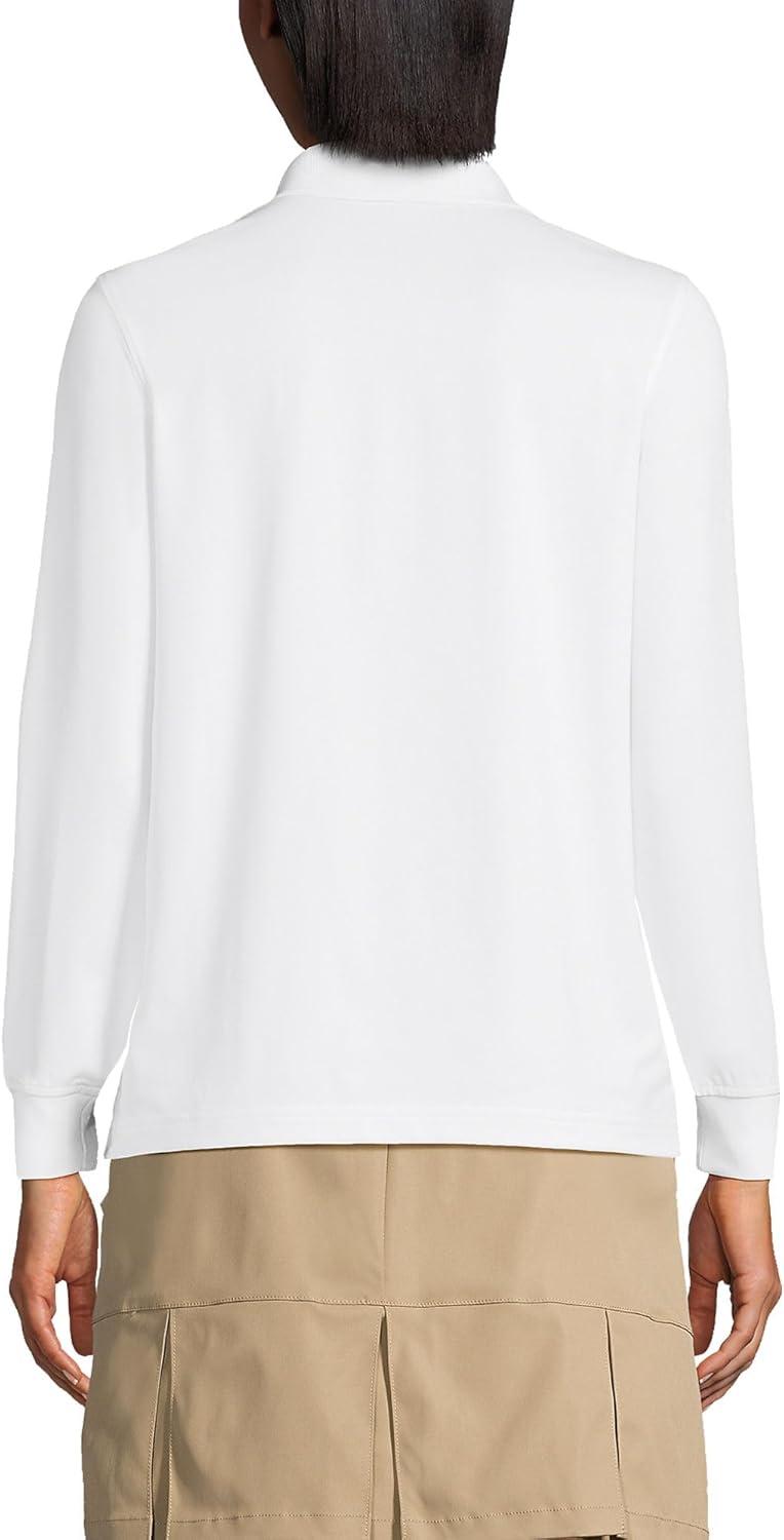 Lands’ End School Uniform Women’s Long Sleeve Feminine Fit Interlock Polo Shirt(White)