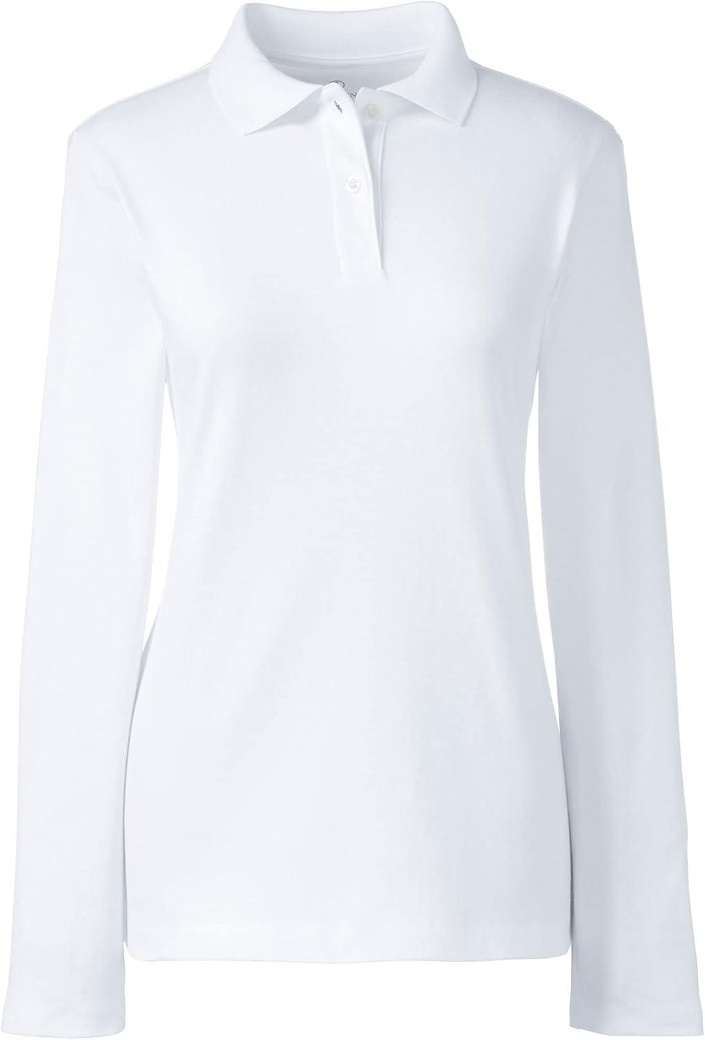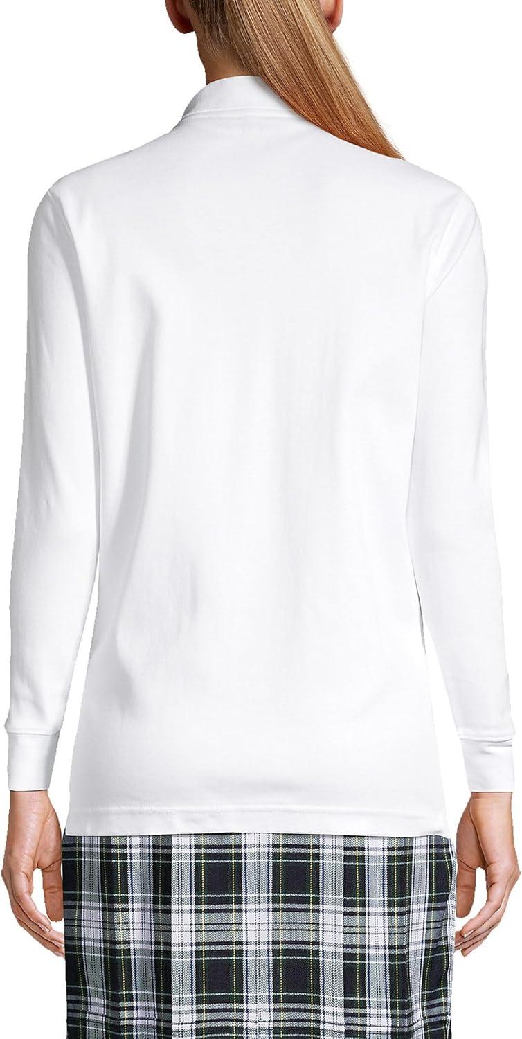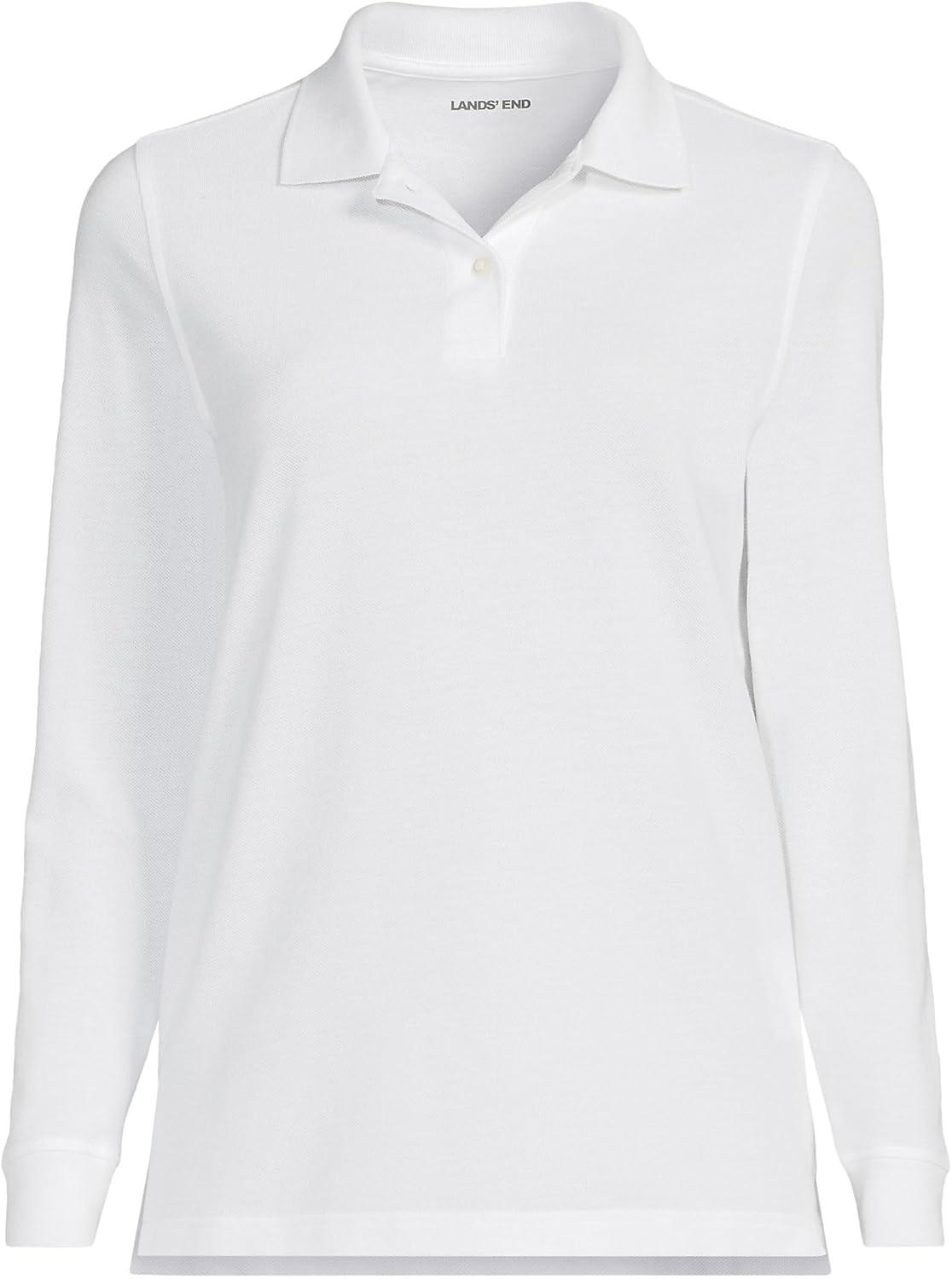 Lands’ End School Uniform Women’s Long Sleeve Feminine Fit Interlock Polo Shirt(White)