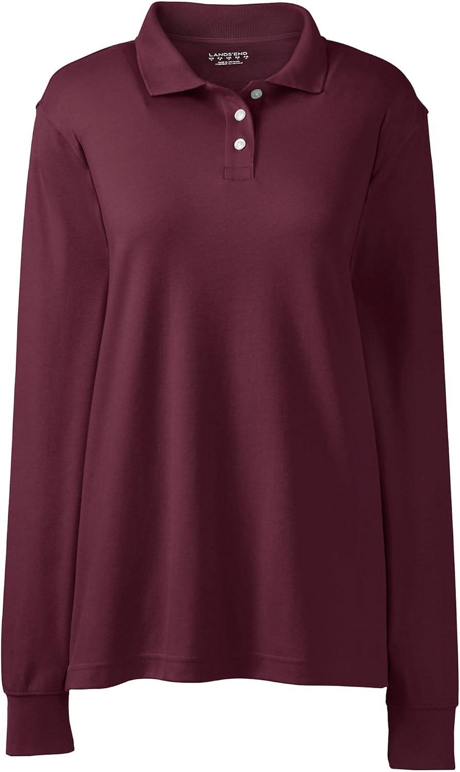 Lands’ End School Uniform Women’s Long Sleeve Interlock Polo Shirt(Burgundy)