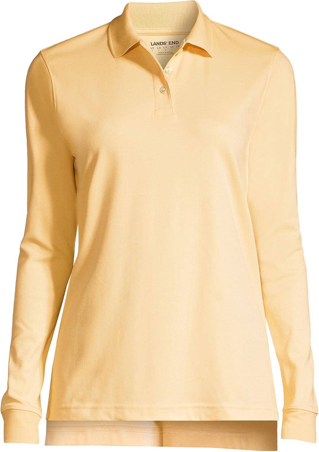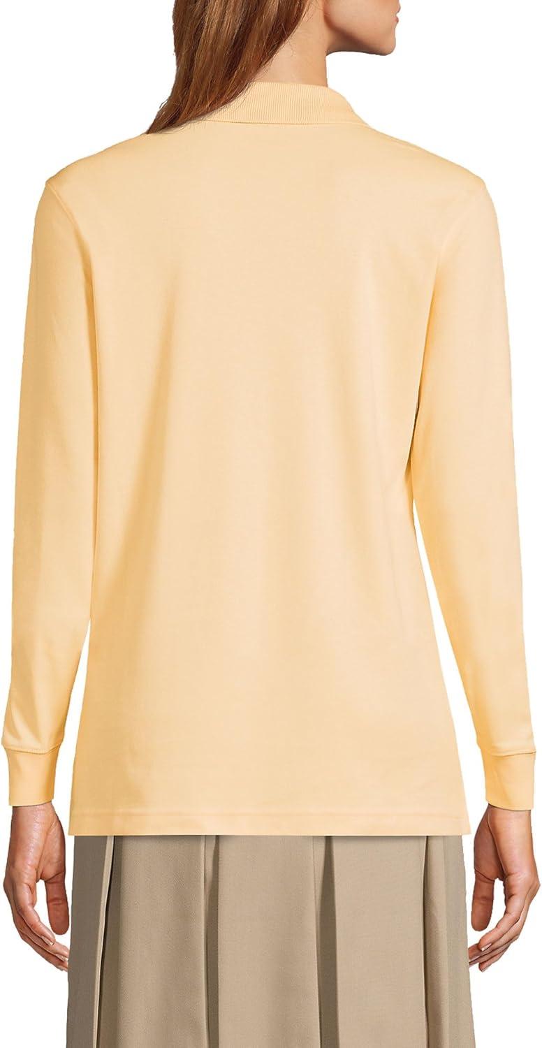 Lands’ End School Uniform Women’s Long Sleeve Feminine Fit Interlock Polo Shirt(Maize)