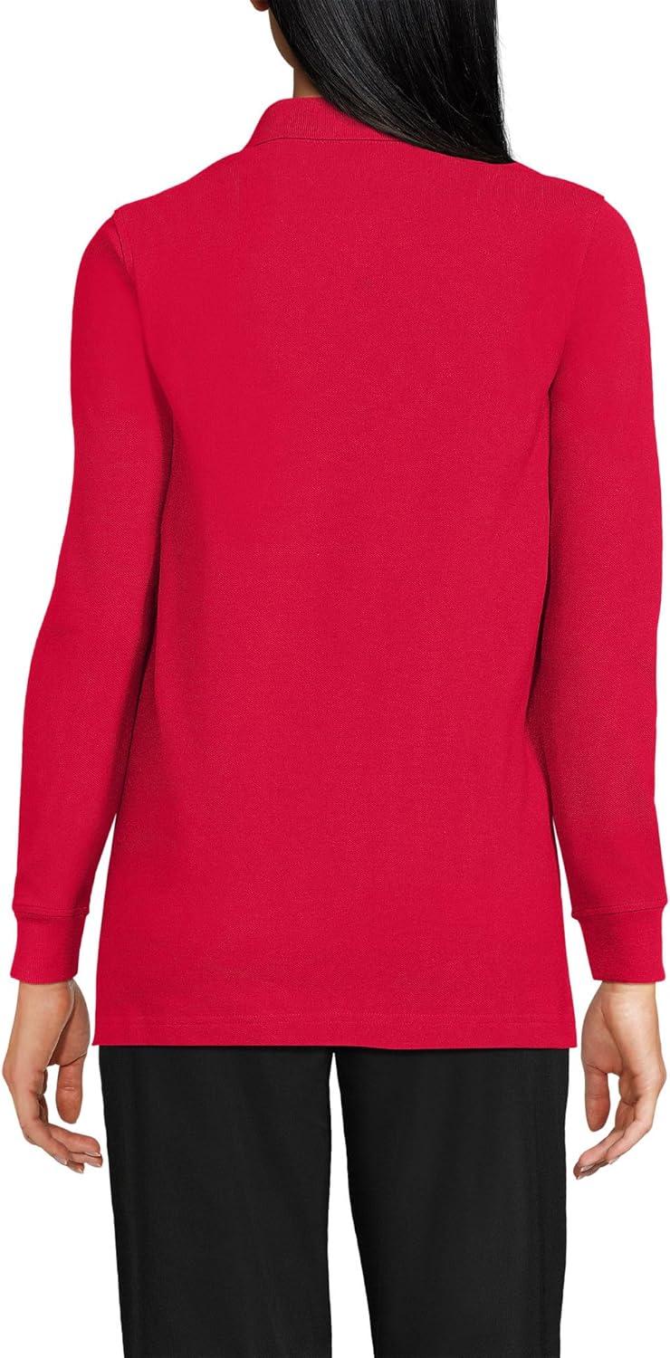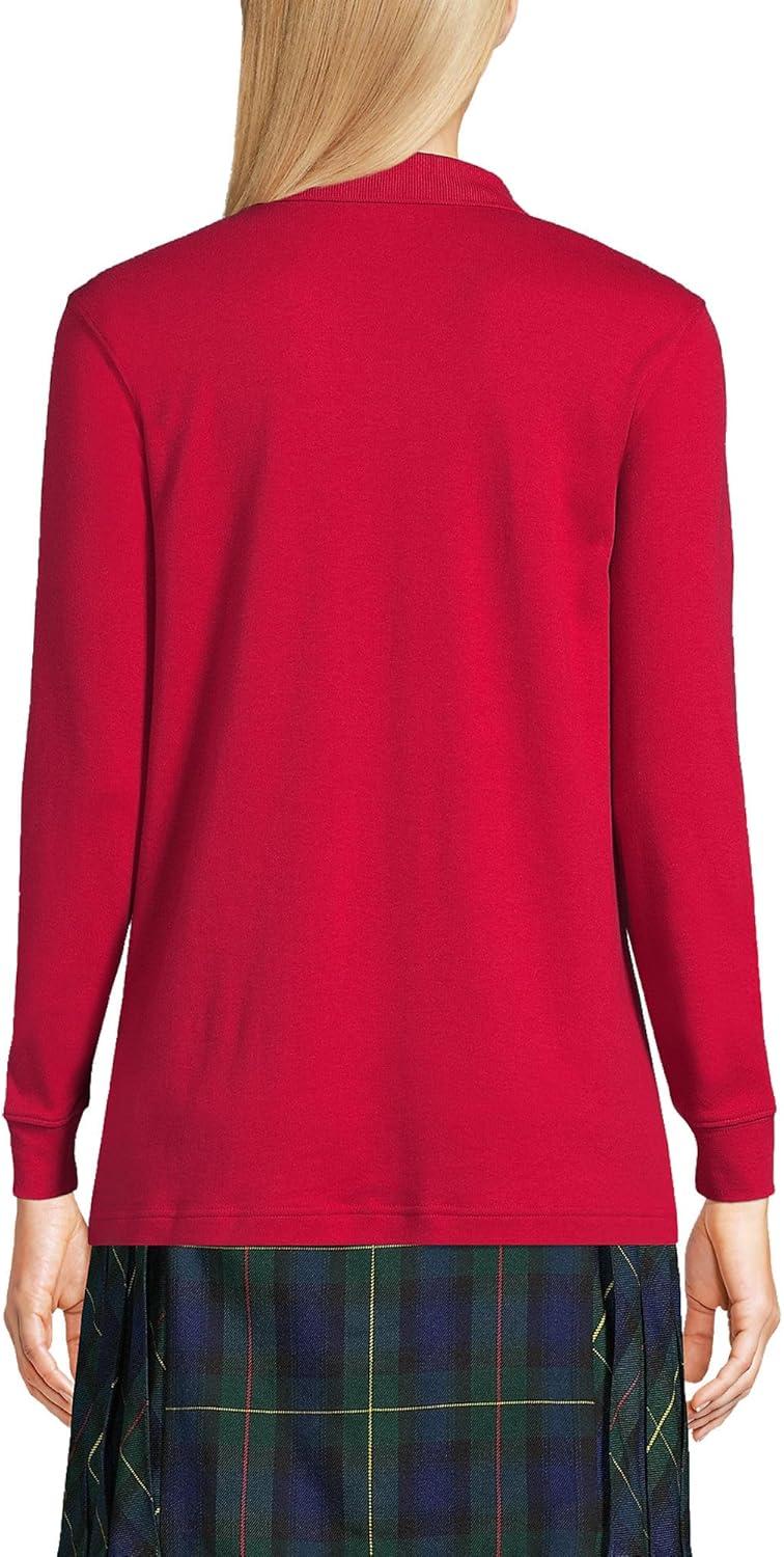 Lands’ End School Uniform Women’s Long Sleeve Feminine Fit Interlock Polo Shirt(Red)