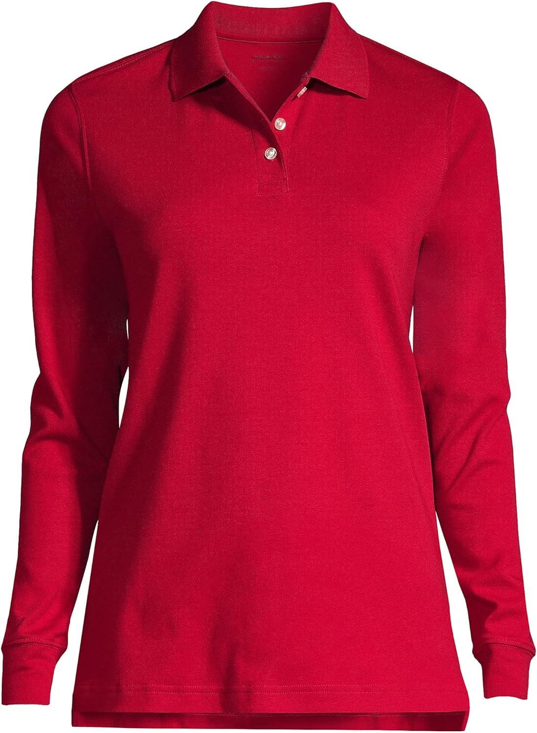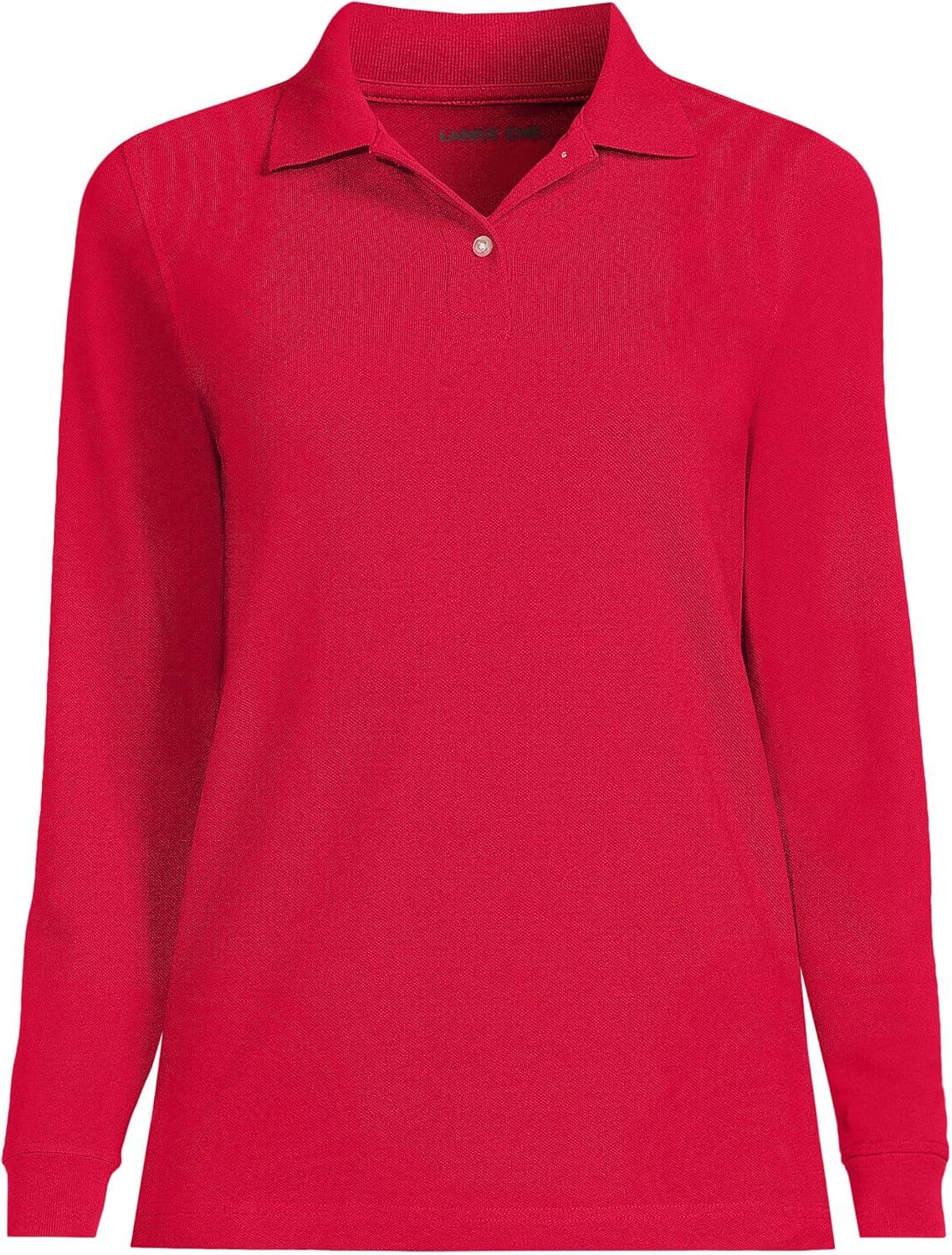 Lands’ End School Uniform Women’s Long Sleeve Rapid Dry Polo Shirt(Red)
