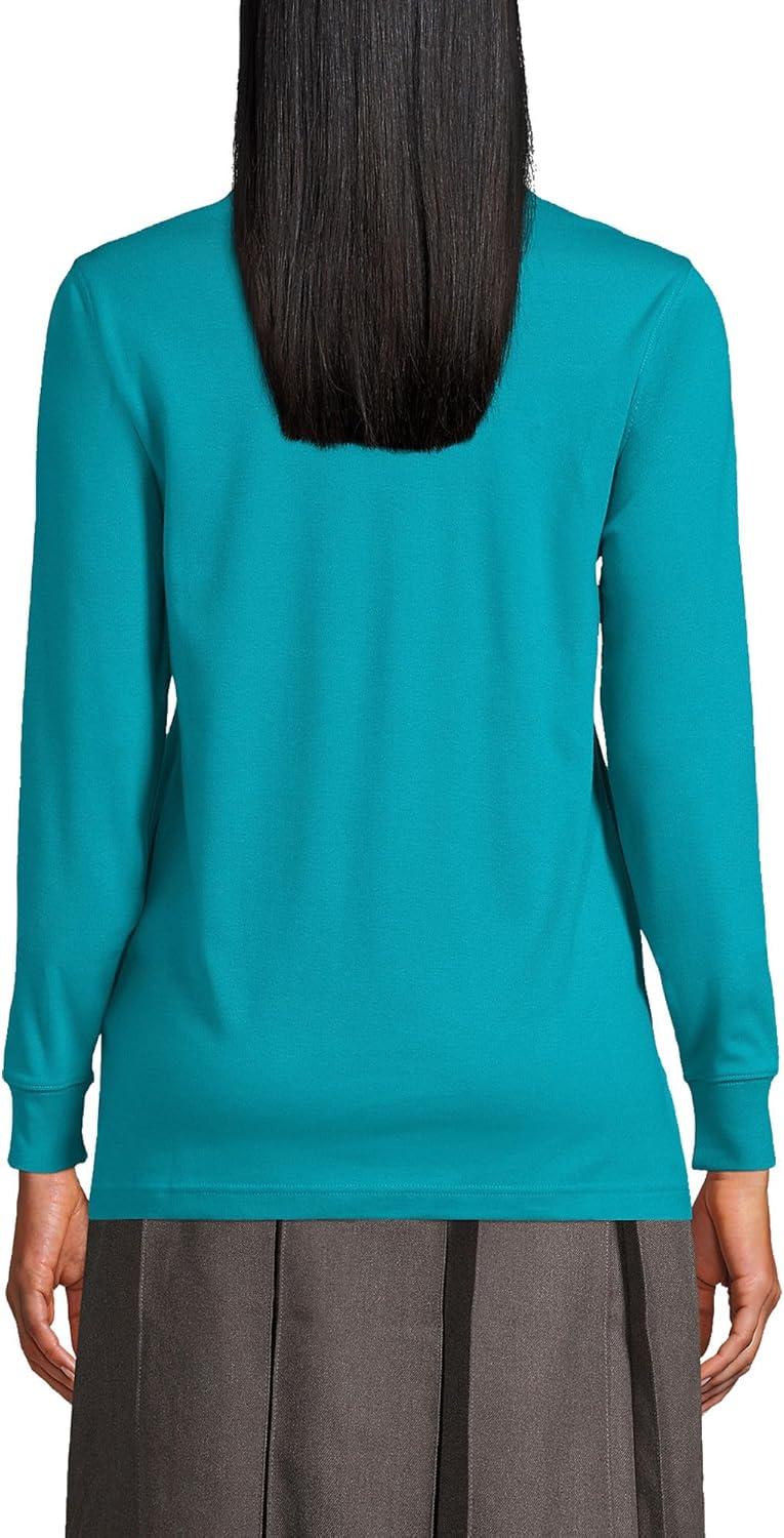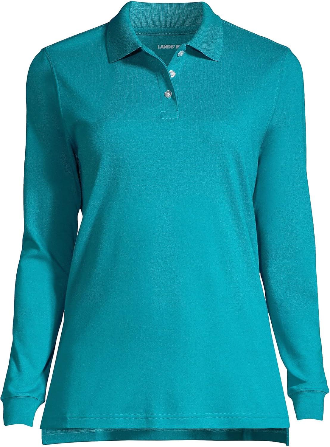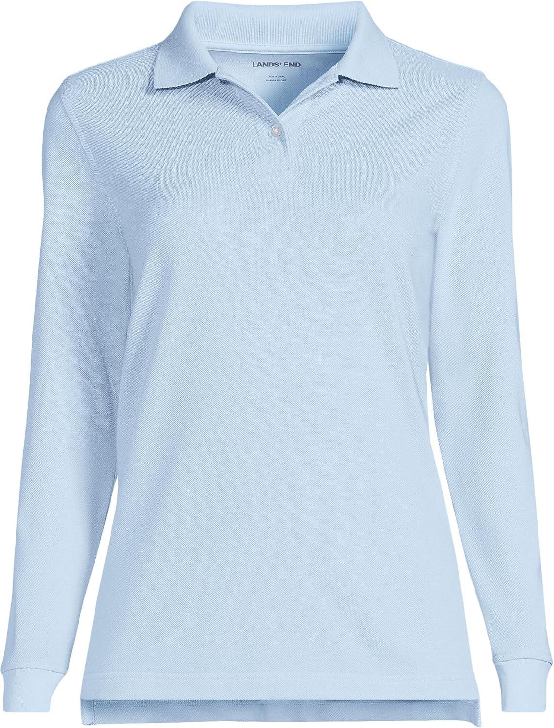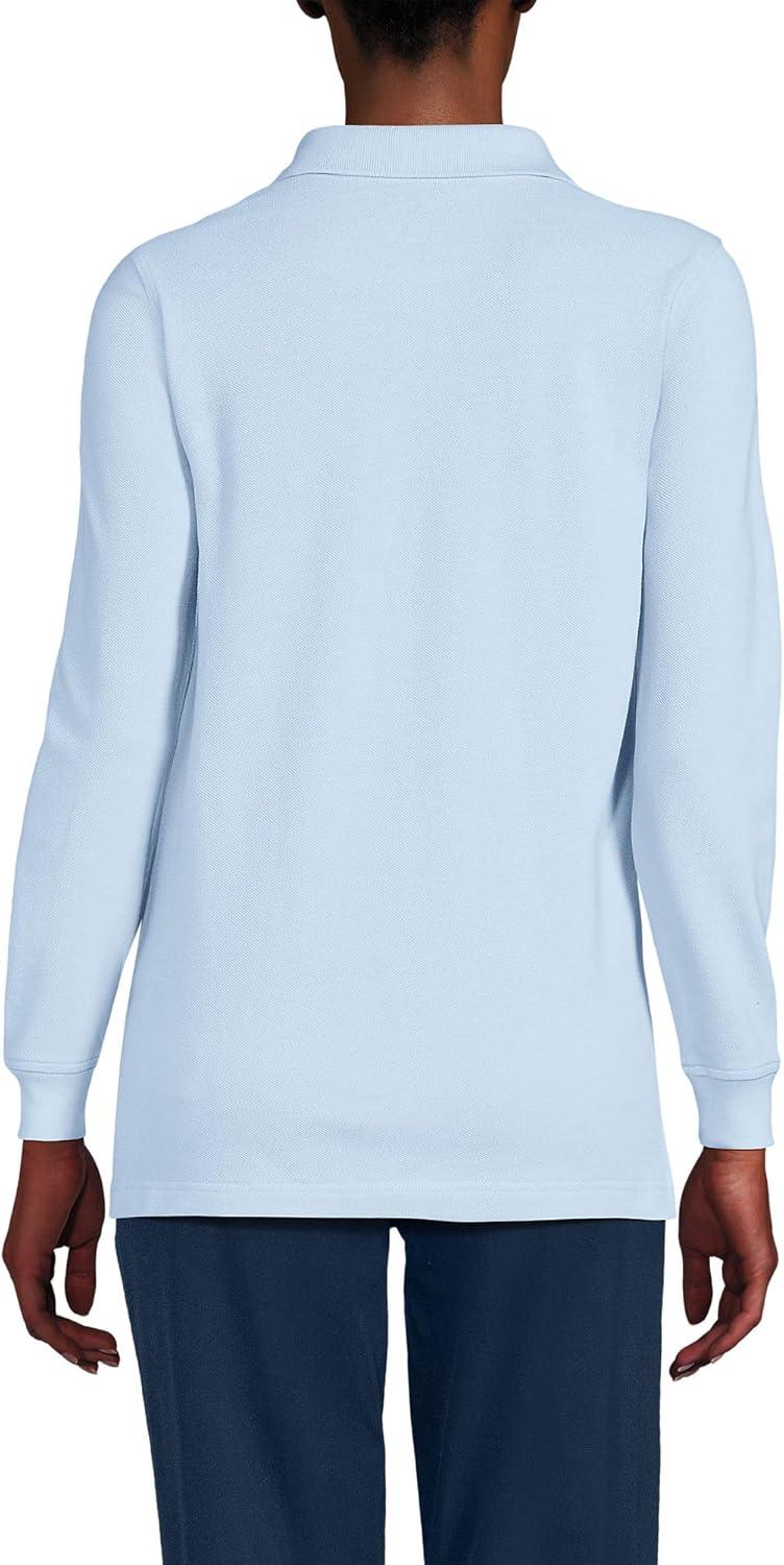 Lands’ End School Uniform Women’s Long Sleeve Interlock Polo Shirt(Blue)