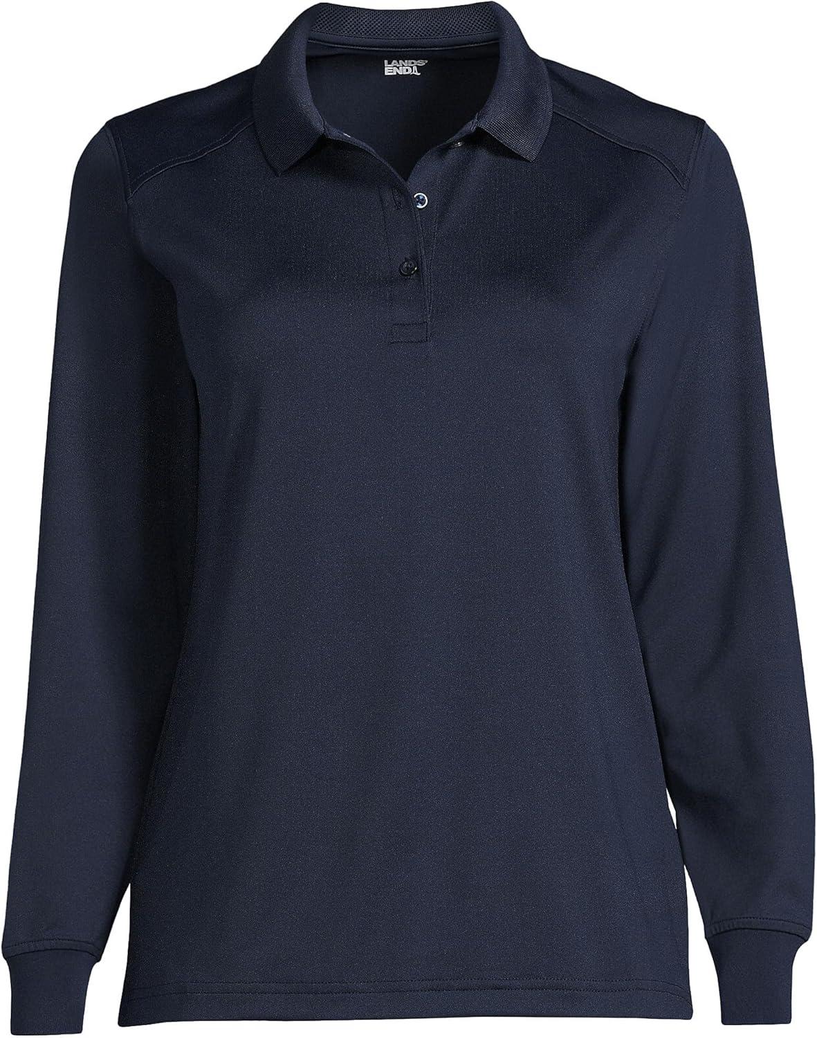Lands’ End School Uniform Women’s Long Sleeve Rapid Dry Polo Shirt(Classic Navy)