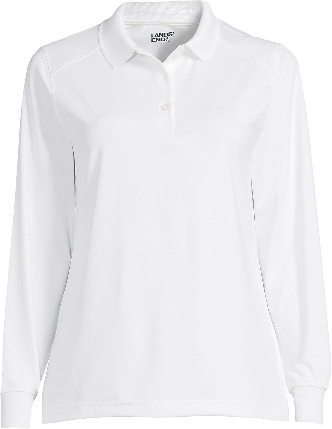 Lands’ End School Uniform Women’s Long Sleeve Rapid Dry Polo Shirt(White)