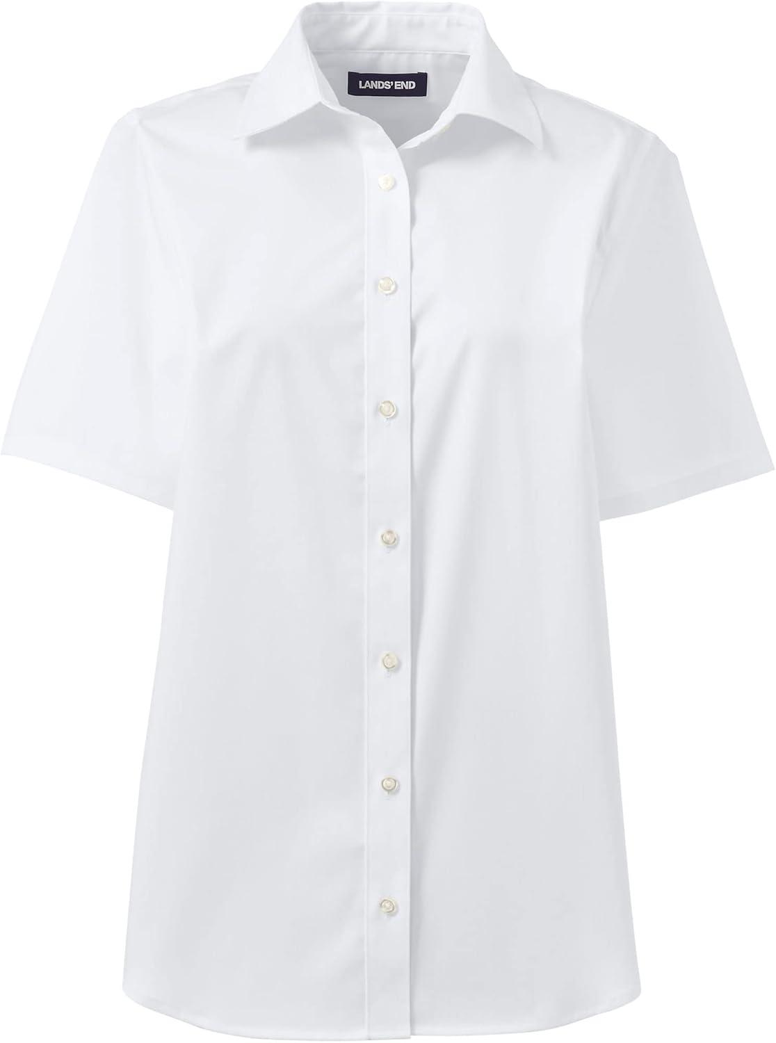 Lands’ End School Uniform Women’s No Gape Short Sleeve Stretch Shirt(Pearl White)