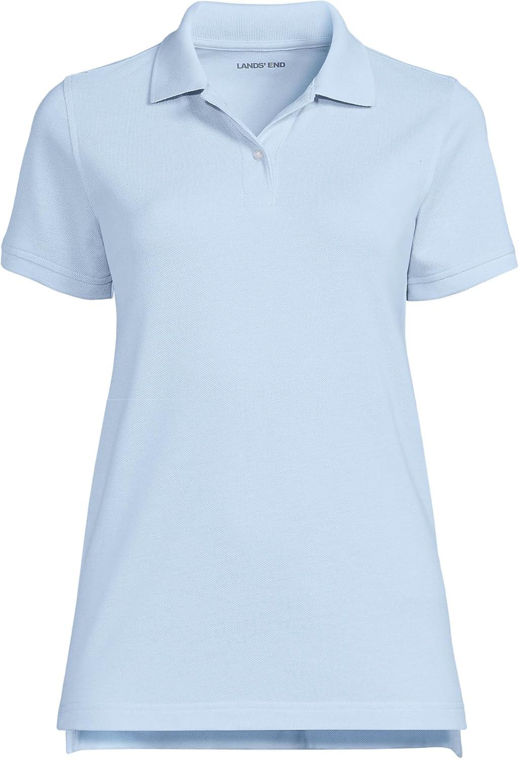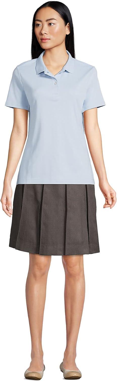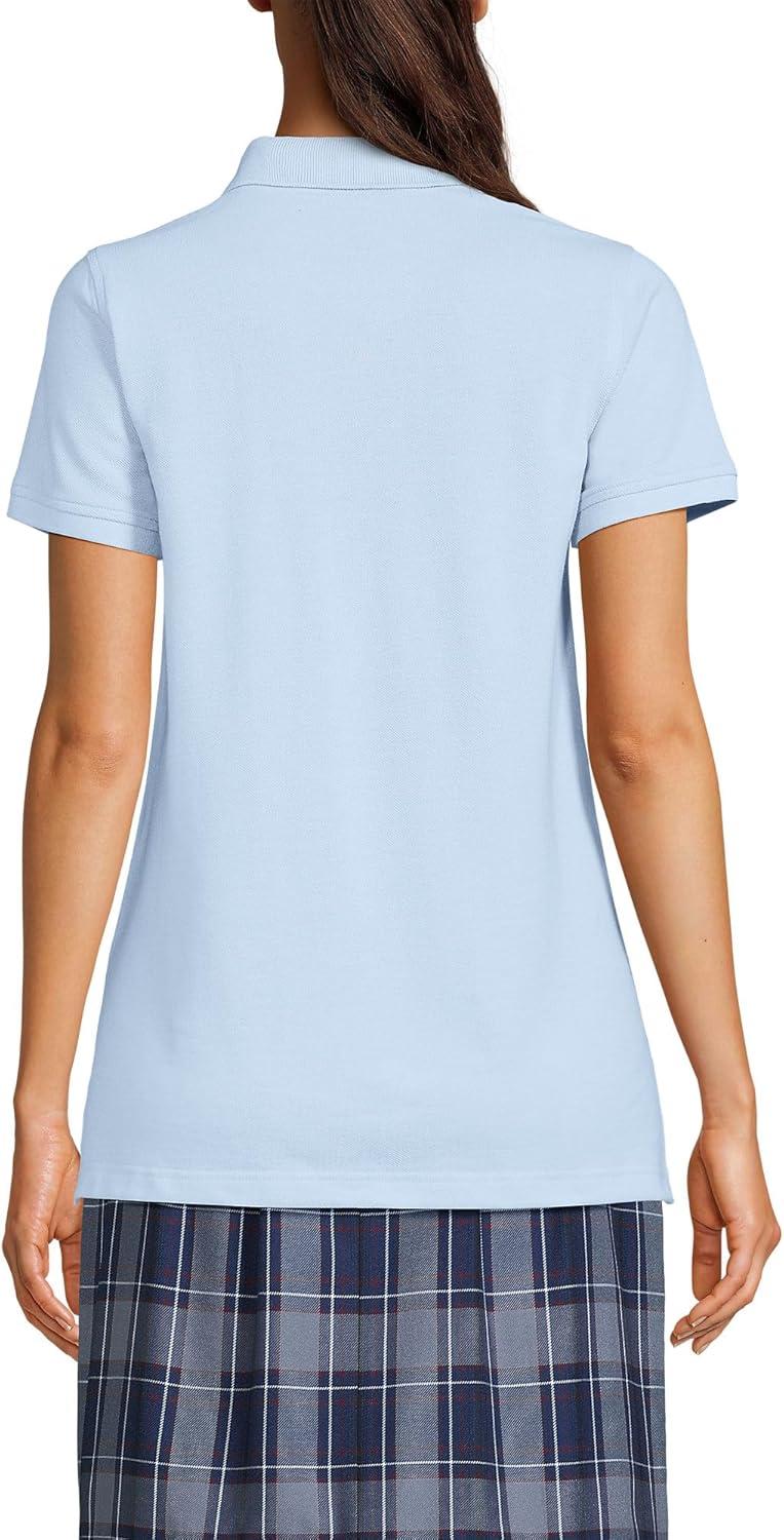 Lands’ End School Uniform Women’s Short Sleeve Feminine Fit Interlock Polo Shirt(Blue)