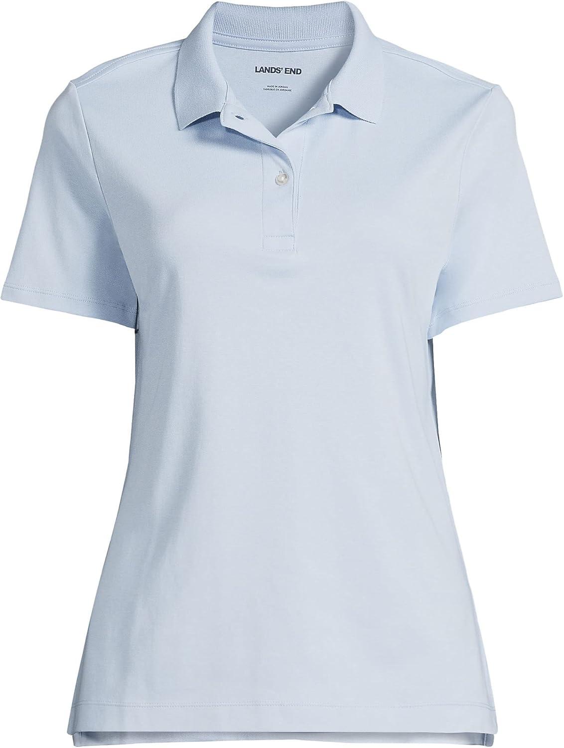 Lands’ End Essentials Women’s Short Sleeve All Day Comfort Polo Shirt – 100% Cotton Won’t Shrink Pill Fade(Blue)