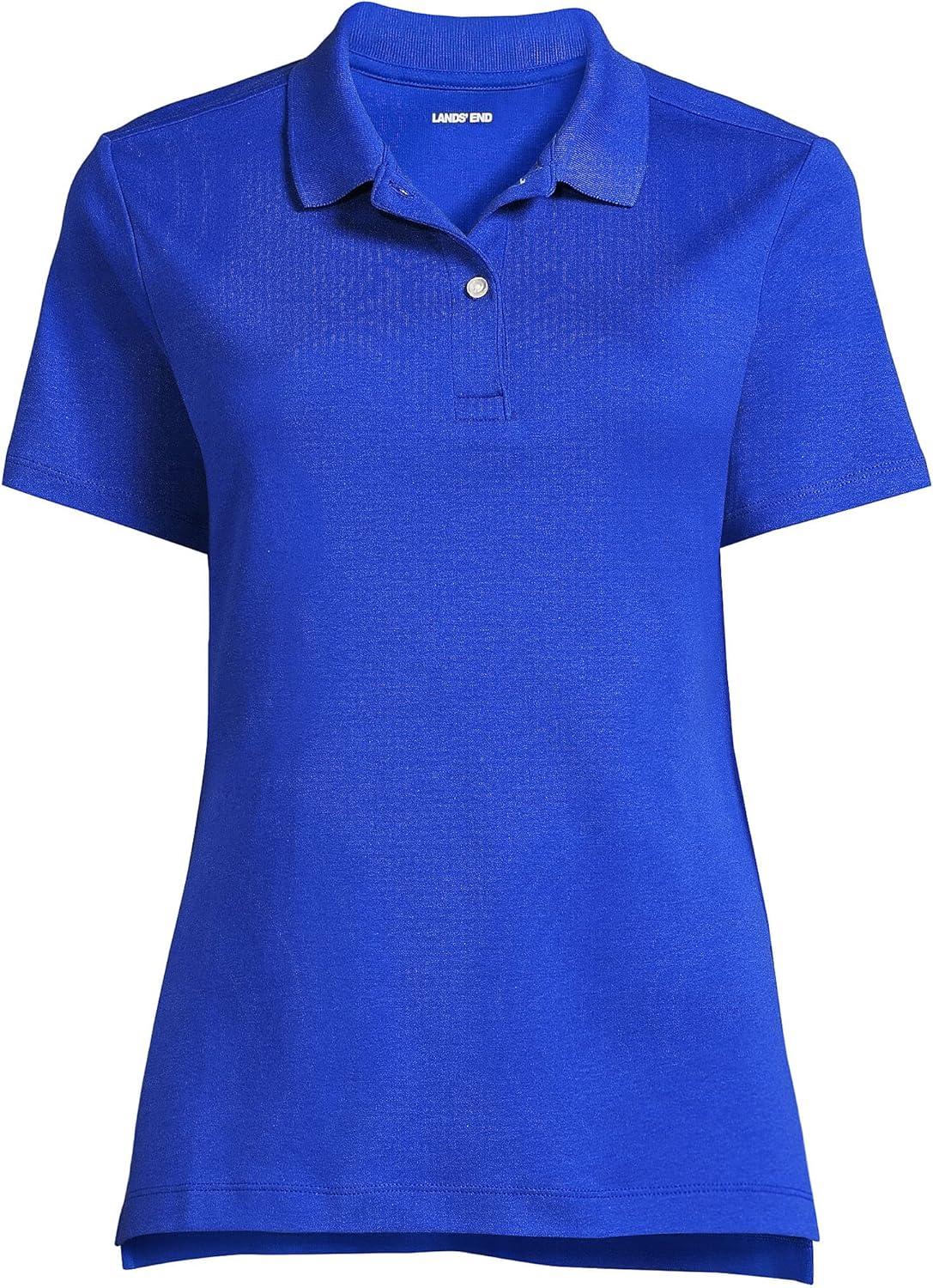 Lands’ End Essentials Women’s Short Sleeve All Day Comfort Polo Shirt – 100% Cotton Won’t Shrink Pill Fade(Cobalt)