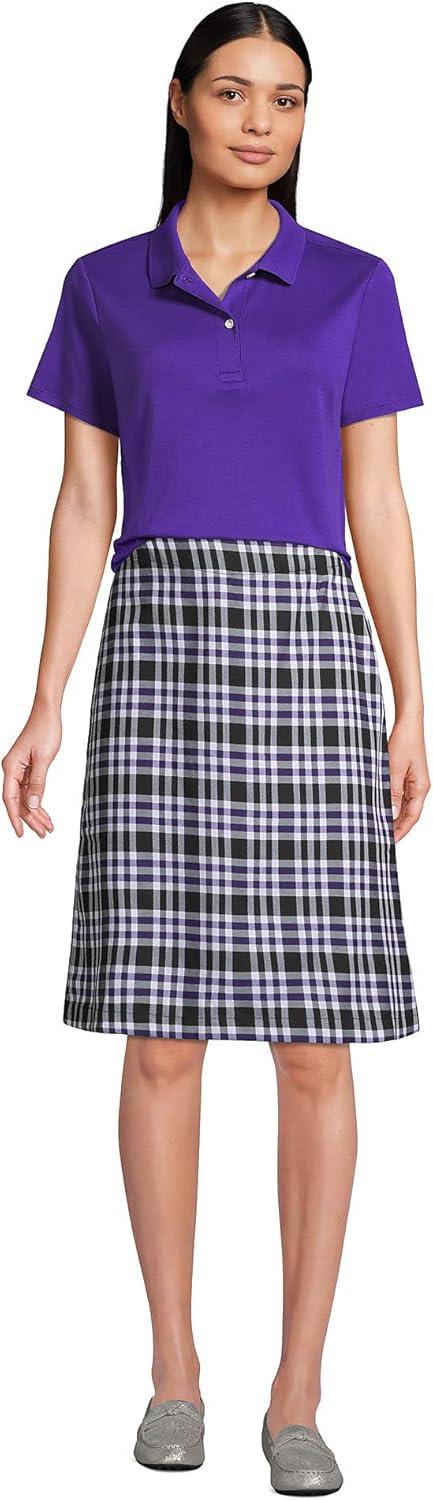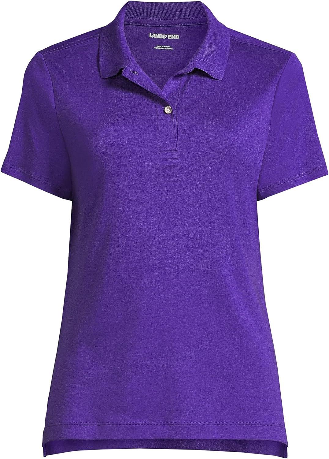 Lands’ End Essentials Women’s Short Sleeve All Day Comfort Polo Shirt – 100% Cotton Won’t Shrink Pill Fade(Deep Purple)