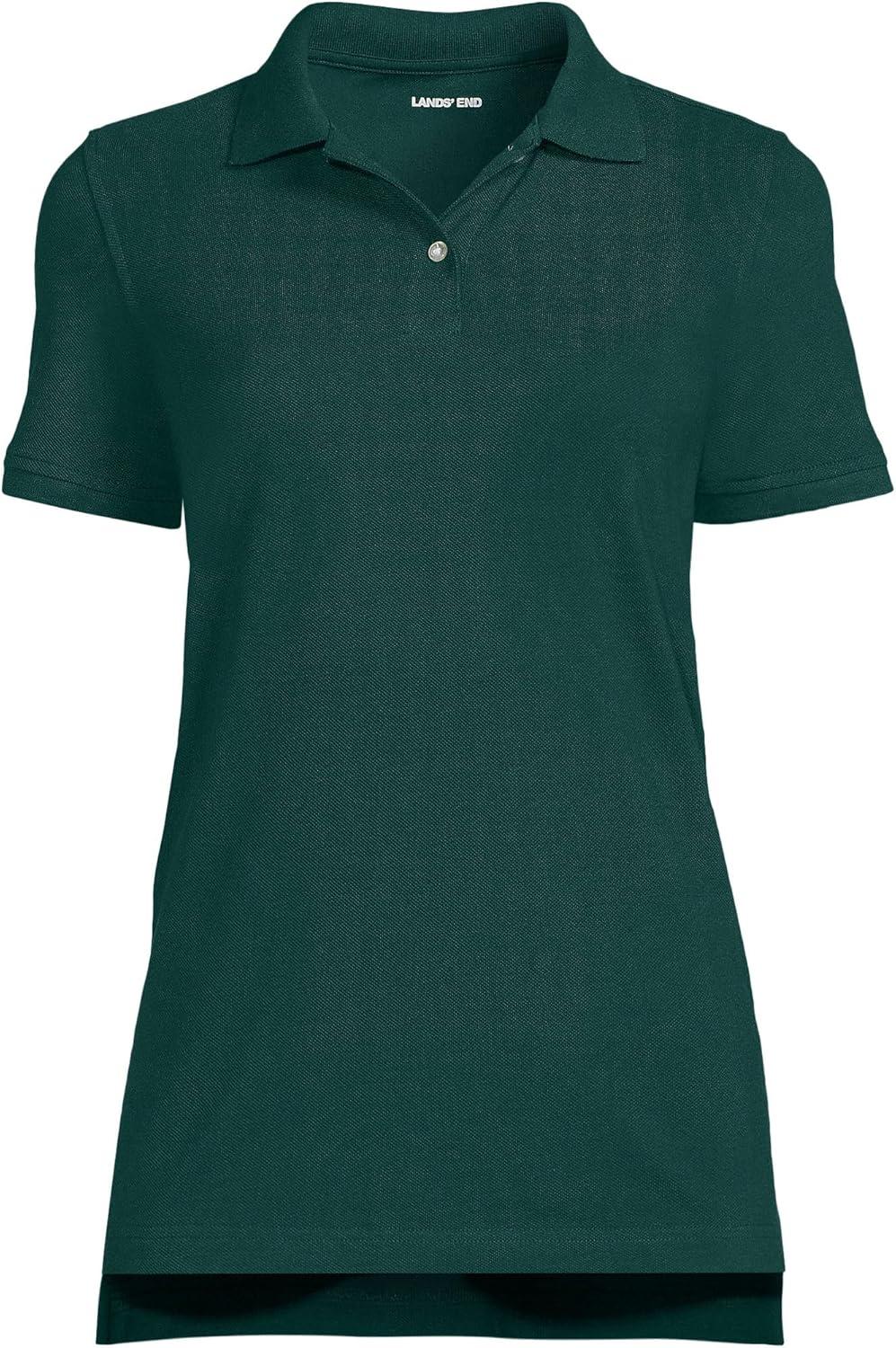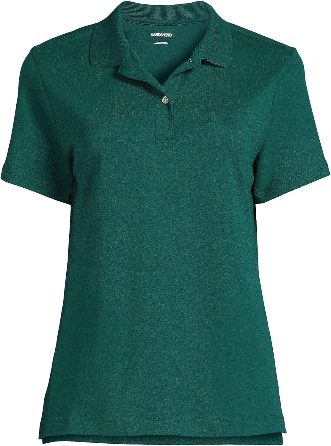 Lands’ End Essentials Women’s Short Sleeve All Day Comfort Polo Shirt – 100% Cotton Won’t Shrink Pill Fade(Evergreen)