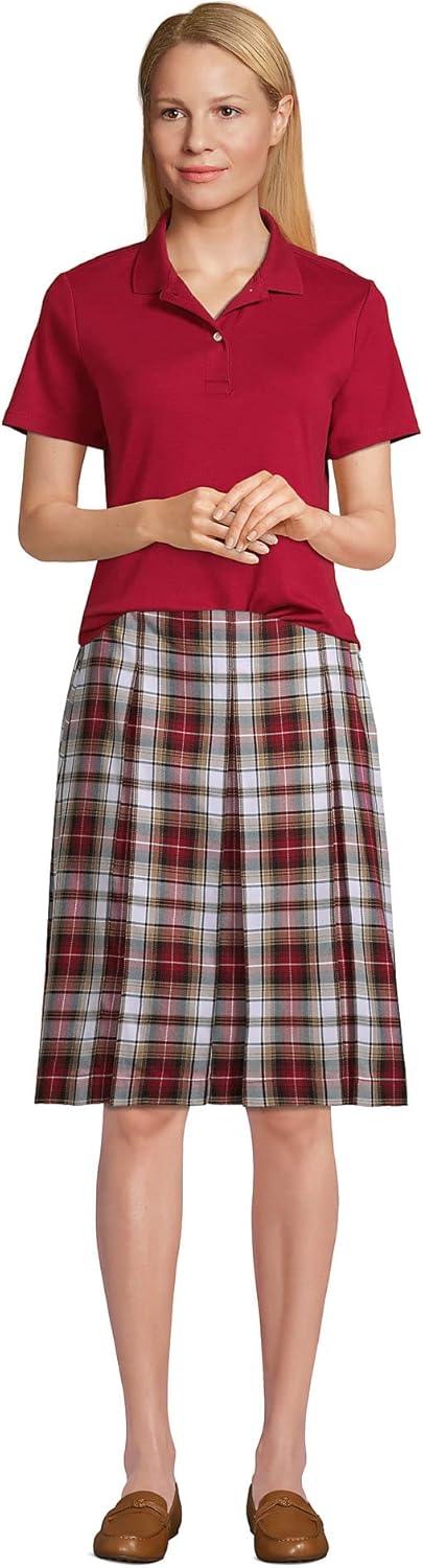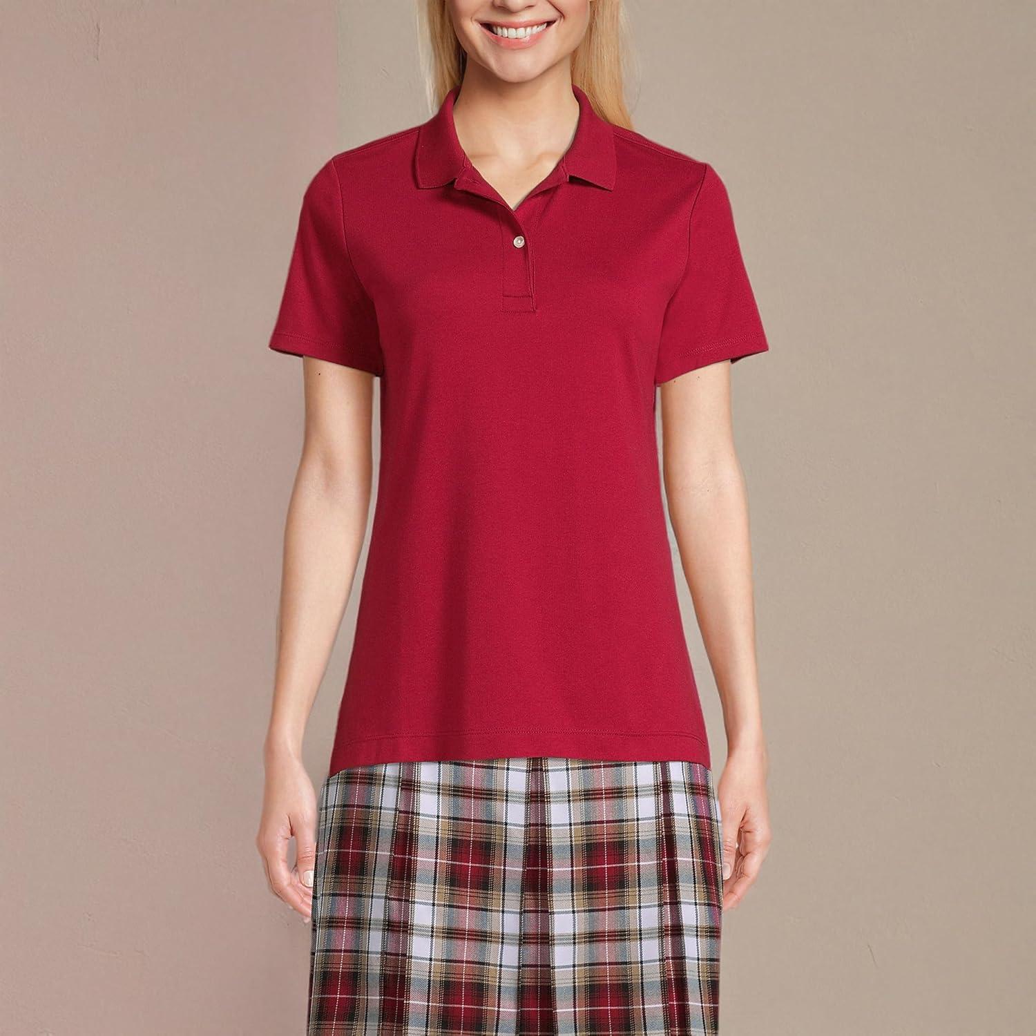 Lands’ End School Uniform Women’s Short Sleeve Feminine Fit Interlock Polo Shirt(Red)
