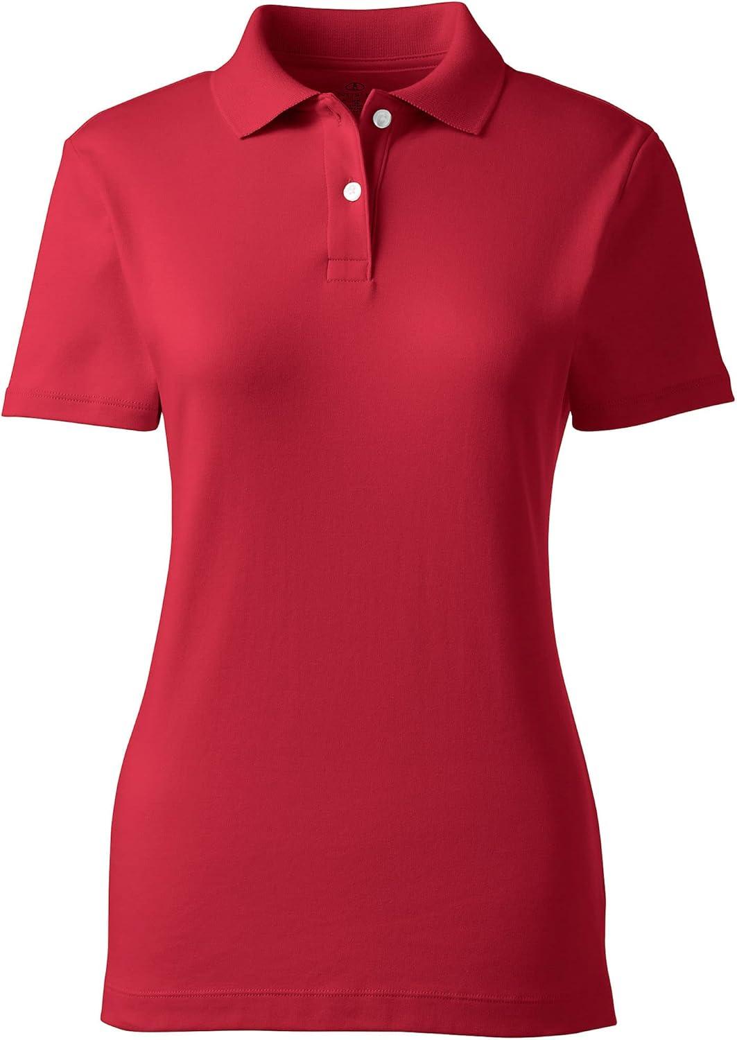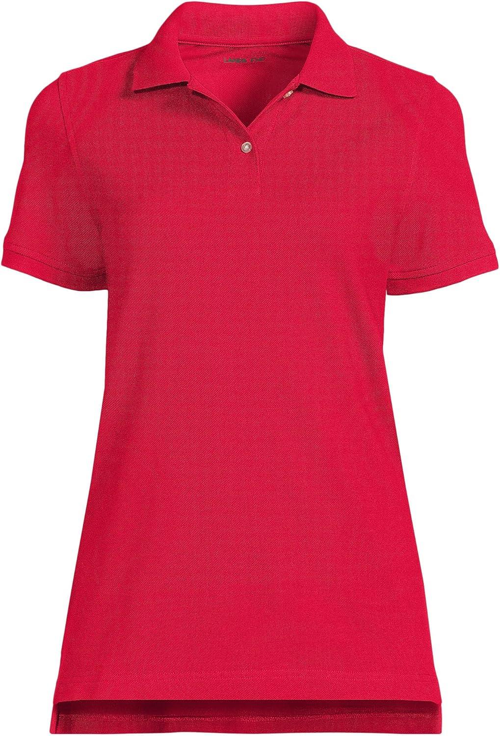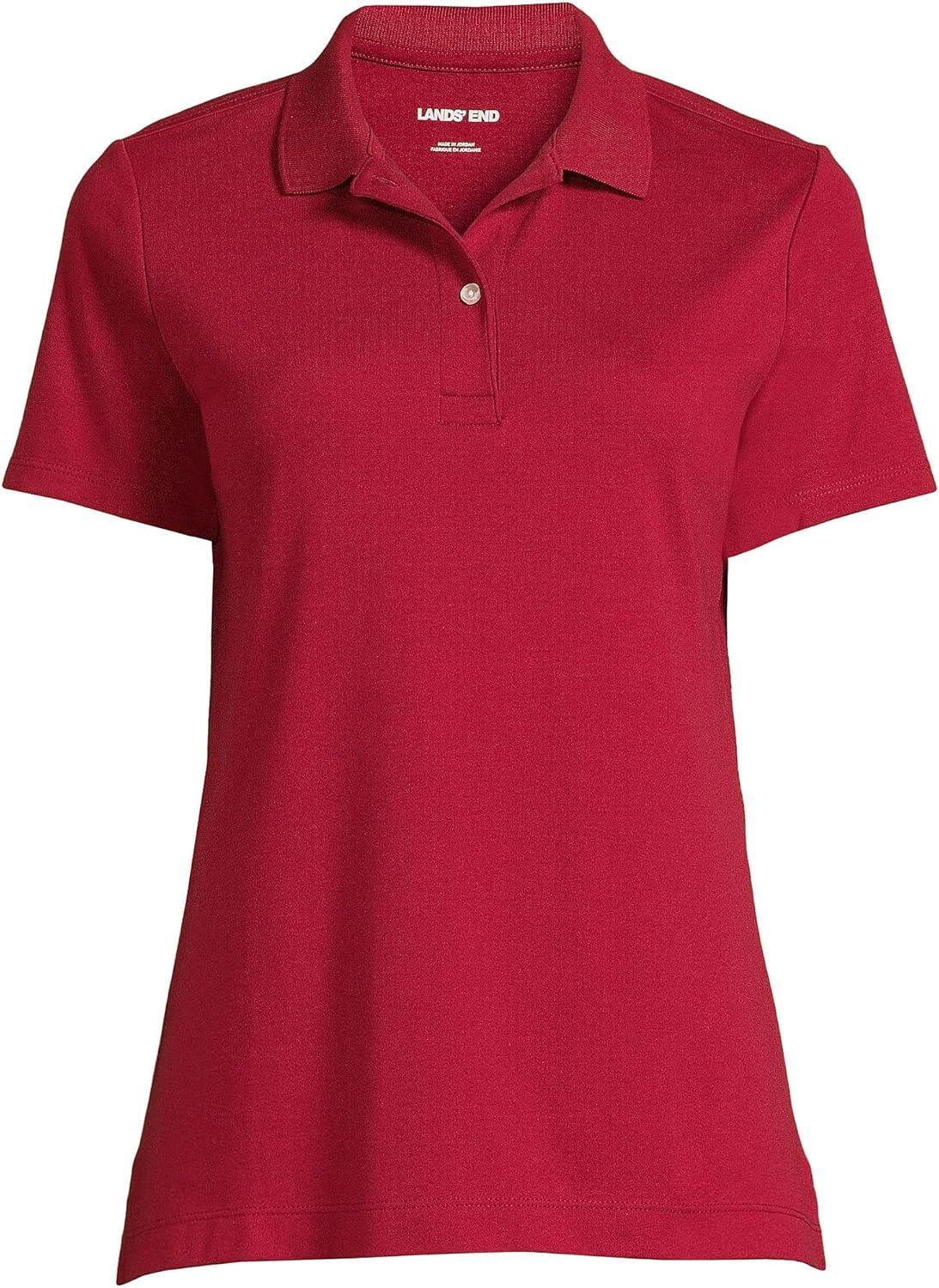 Lands’ End Essentials Women’s Short Sleeve All Day Comfort Polo Shirt – 100% Cotton Won’t Shrink Pill Fade(Red)