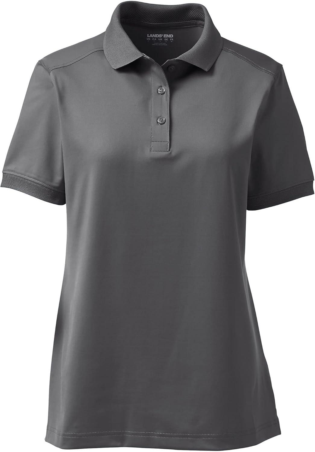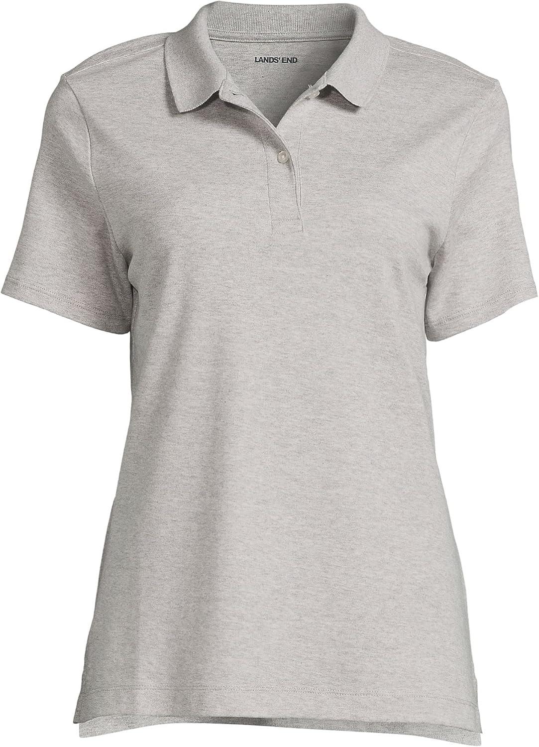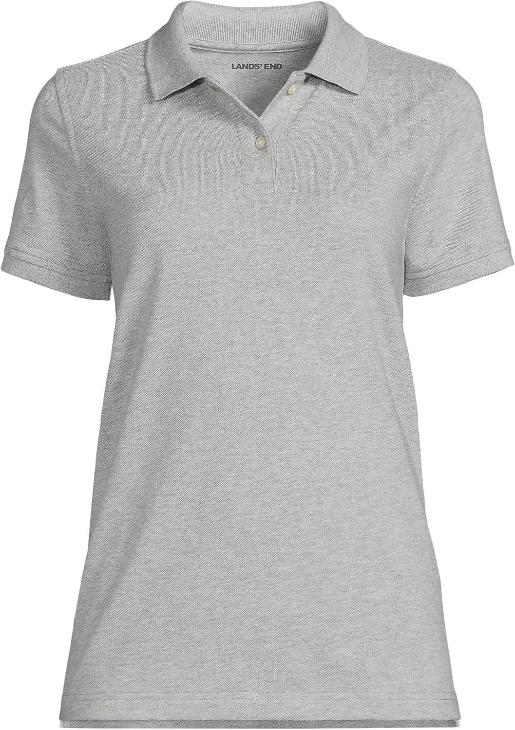 Lands’ End Essentials Women’s Short Sleeve All Day Comfort Polo Shirt – 100% Cotton Won’t Shrink Pill Fade(Gray Heather)