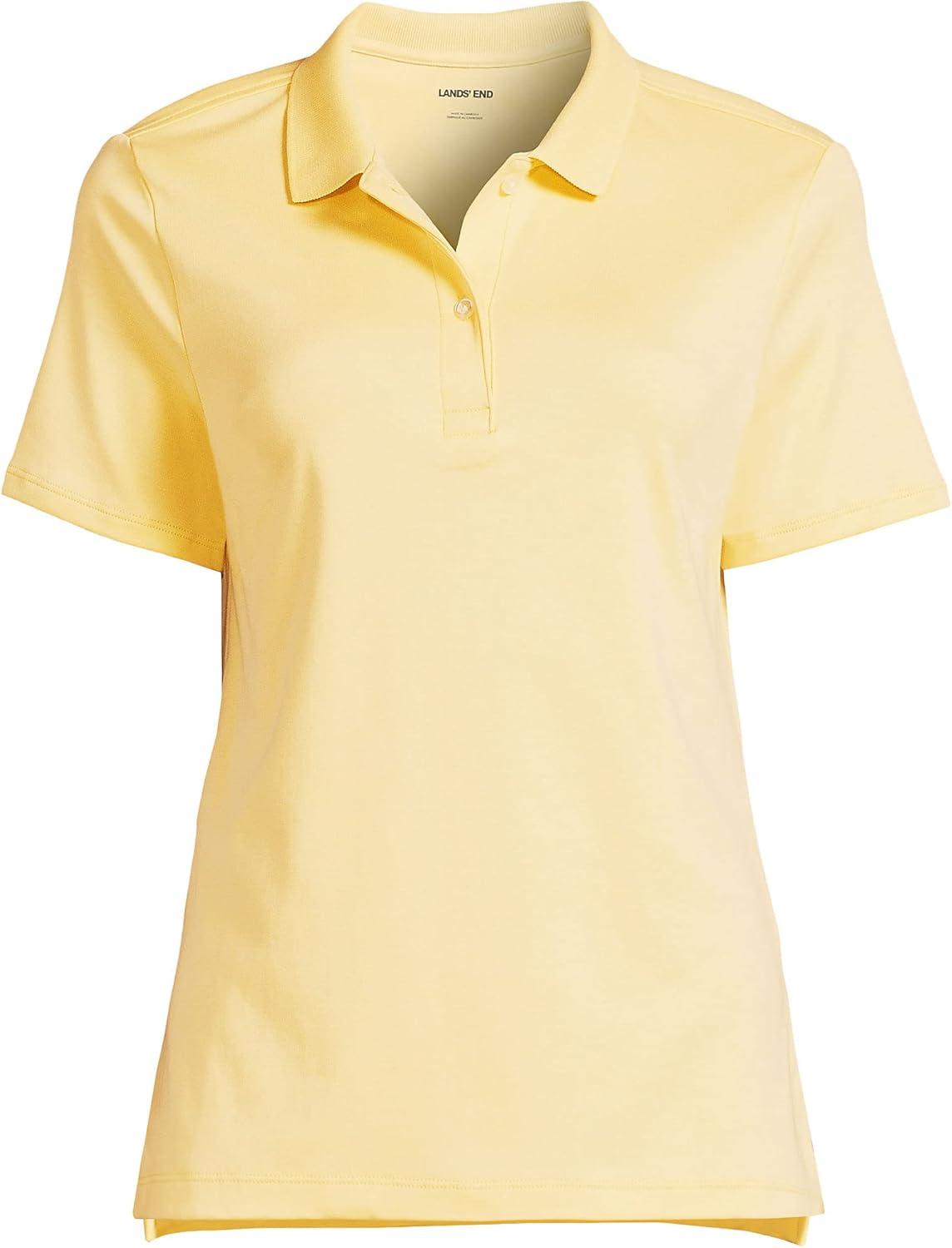 Lands’ End Essentials Women’s Short Sleeve All Day Comfort Polo Shirt – 100% Cotton Won’t Shrink Pill Fade(Maize)