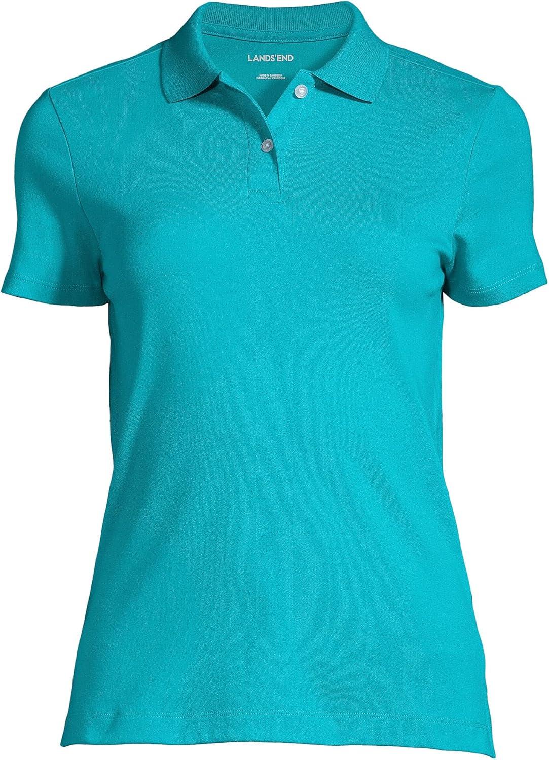 Lands’ End Essentials Women’s Short Sleeve All Day Comfort Polo Shirt – 100% Cotton Won’t Shrink Pill Fade(Teal Breeze)