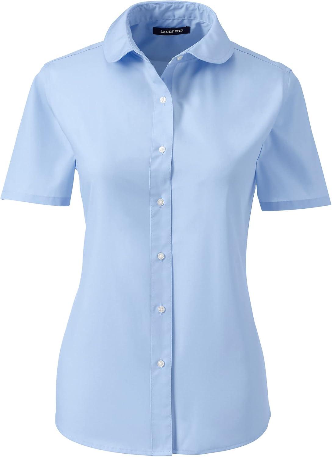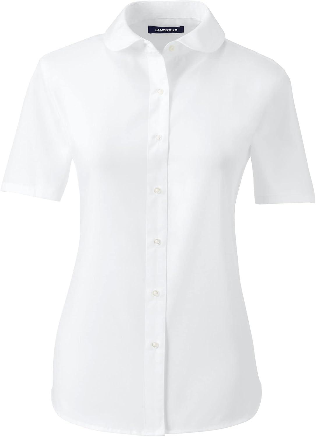 Lands’ End School Uniform Women’s Short Sleeve Peter Pan Collar Broadcloth Shirt(White)