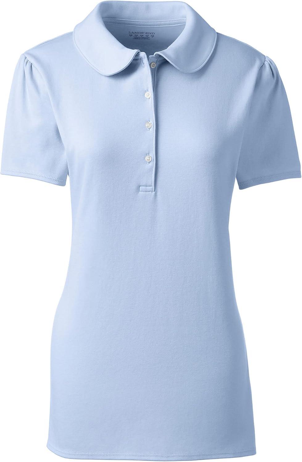 Lands’ End School Uniform Women’s Short Sleeve Peter Pan Collar Polo Shirt(Blue)