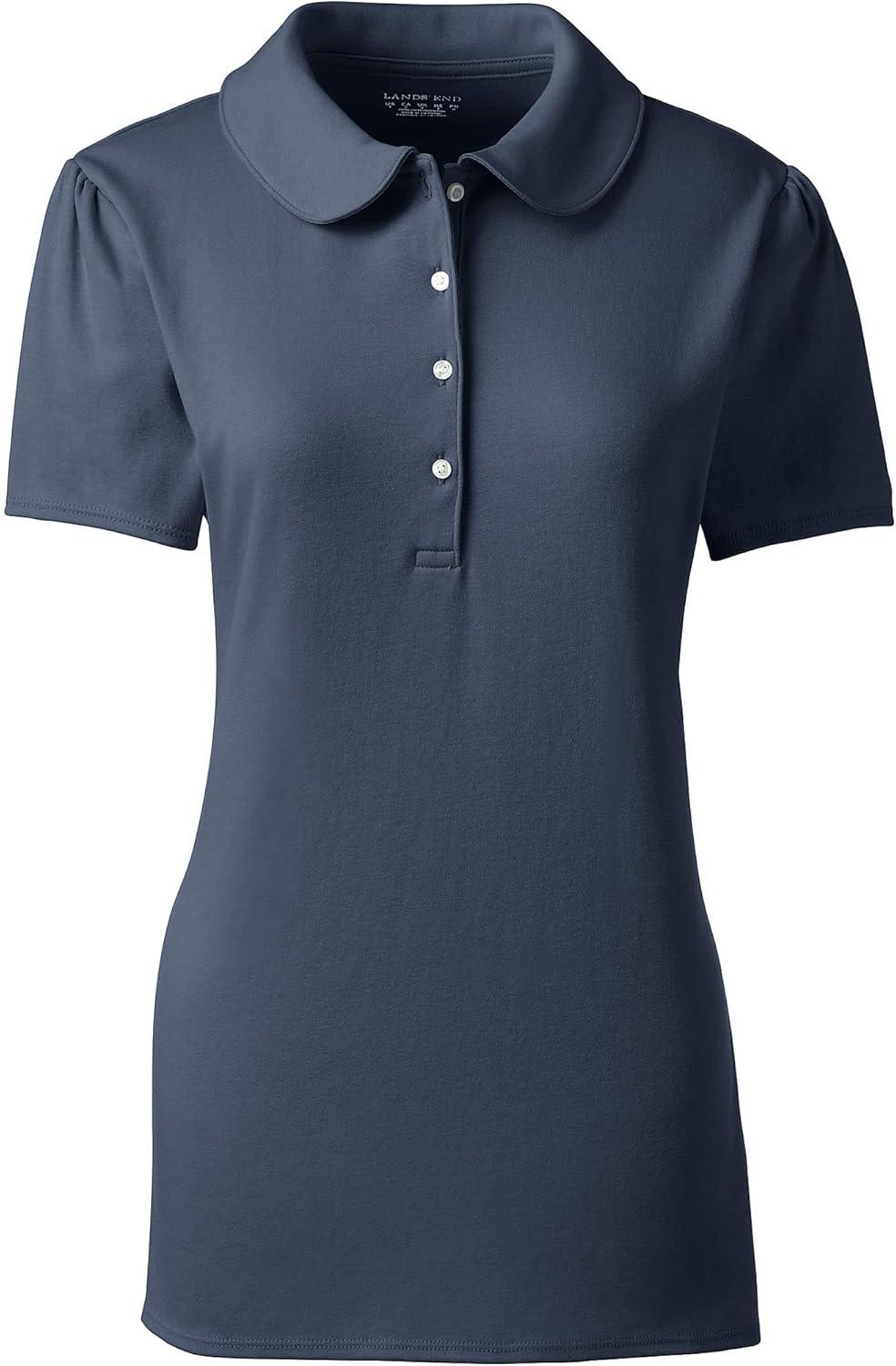Lands’ End School Uniform Women’s Short Sleeve Peter Pan Collar Polo Shirt(Classic Navy)