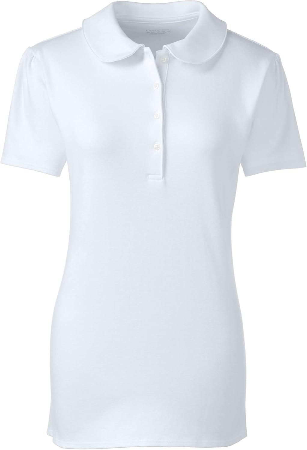 Lands’ End School Uniform Women’s Short Sleeve Peter Pan Collar Polo Shirt(White)