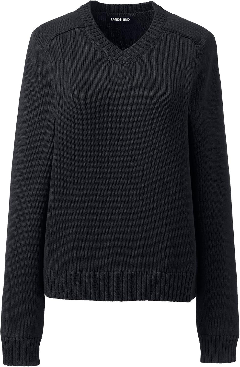 Lands’ End School Uniform Young Women’s Cotton Modal V-Neck Sweater(Black)