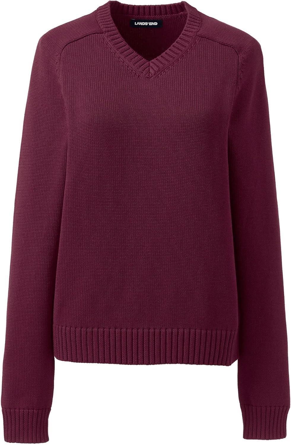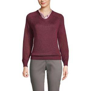 Lands’ End School Uniform Young Women’s Cotton Modal V-Neck Sweater(Burgundy)