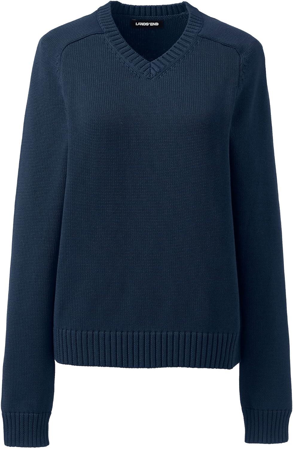 Lands’ End School Uniform Young Women’s Cotton Modal V-Neck Sweater(Classic Navy)