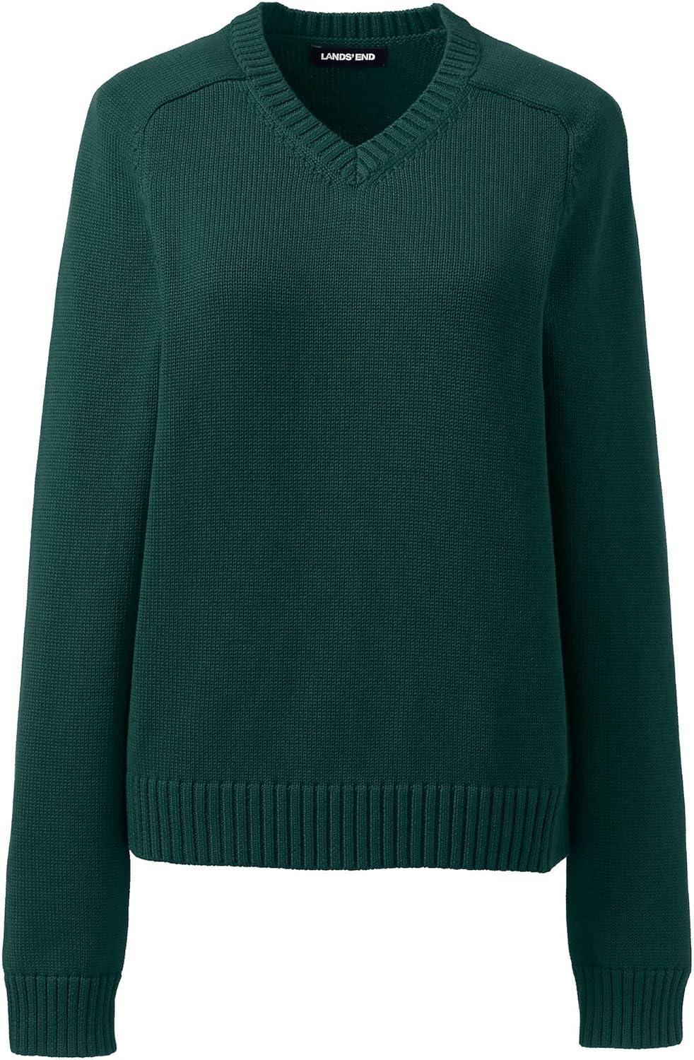 Lands’ End School Uniform Young Women’s Cotton Modal V-Neck Sweater(Evergreen)