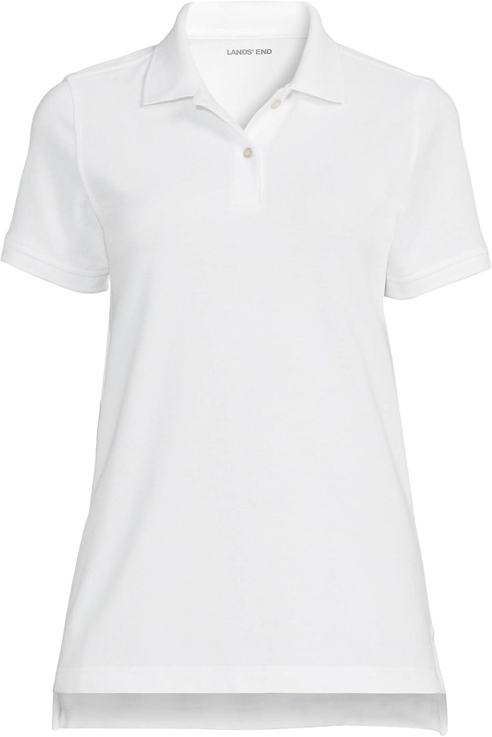 Lands’ End Essentials Women’s Short Sleeve All Day Comfort Polo Shirt – 100% Cotton Won’t Shrink Pill Fade(White)