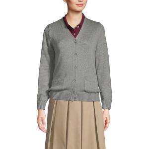 Lands’ End School Uniform Young Women’s Cotton Modal Cardigan Sweater(Pewter Heather)