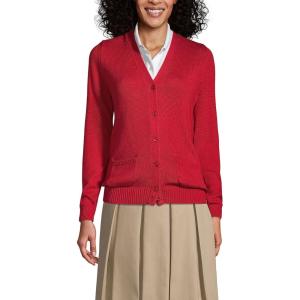 Lands’ End School Uniform Young Women’s Cotton Modal Cardigan Sweater(Red)