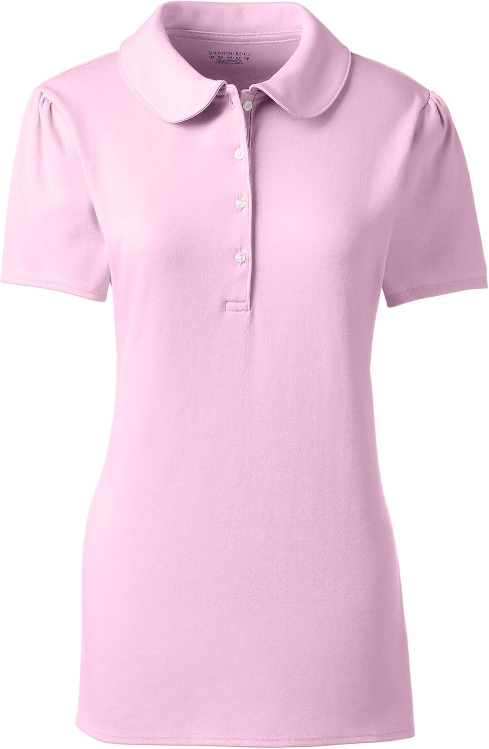 Lands’ End School Uniform Women’s Short Sleeve Peter Pan Collar Polo Shirt(Ice Pink)